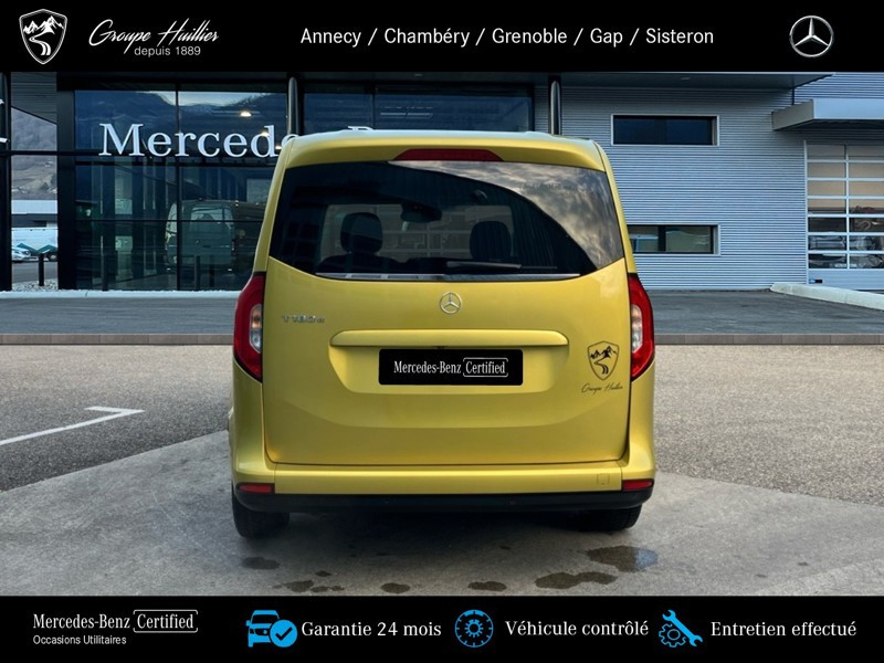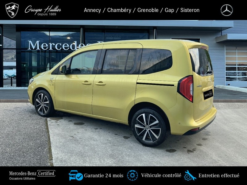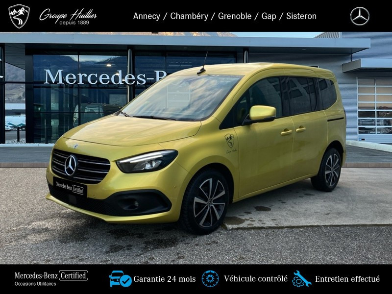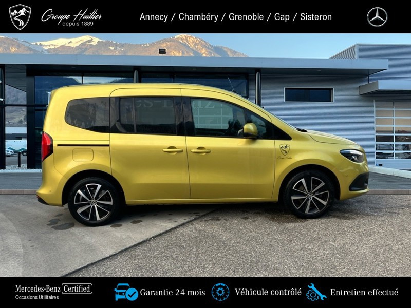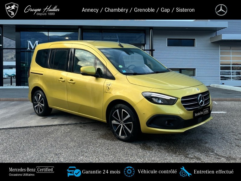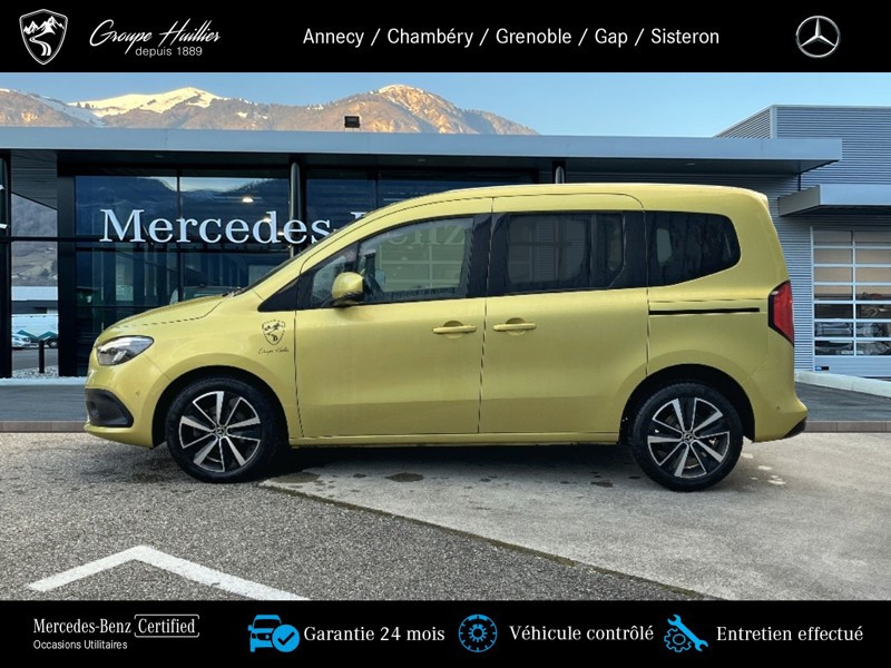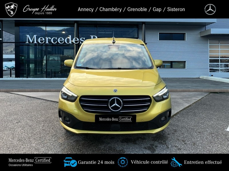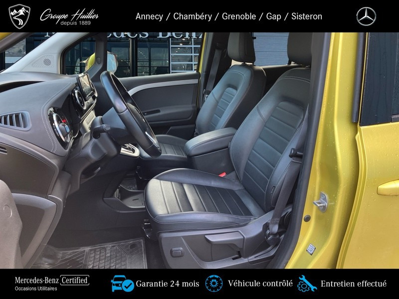 180 d PROGRESSIVE Standard, diesel, jaune, 17/06/2022, Prise 12 V dans le compartiment passagers, Conduit ?d air chaud vers compartiment arrière, Régulateur et limiteur de vitesse TEMPOMAT, Prise de force MB 60 2b avec bride, position basse, régime bas, Lève-vitre AV él. avec fonction confort, Hayon arrière, Volant multifonction, Lève-vitre électrique dans porte(s) coulissante(s), Assistant de feux de route, Miroir de courtoisie sur le pare-soleil du passager avant, Sièges avant chauffants, Boîte de vitesses automatique à 7 rapports, Vitres teintées arrière et sur les côtés, Moquette sur le plancher du compartiment de chargement, Moquette sur le plancher du compartiment passagers, Cache-bagages, Portes arr. vitrées avec essuie-glace et lave-glace, Pack Technique, Porte_coulissante_droite avec_vitre, Variante de poids 2.199 kg, Lunette arrière chauffante, Pack Navigation, Autoradio numérique (DAB), Navigation, Climatiseur automatique THERMOTRONIC, Protection de la glissiere de porte coulissante,couleur carrosserie, Aide au Parking Active, MB Mobilo avec DSB et garantie corrosion, Pack Stationnement, Phares LED hautes performances, Homologation M1, Habillage intérieur de qualité supérieure, Grille de calandre chromée, Syst. de recharge sans fil pour app. mobiles, Aide au démarrage en côte, Pare-chocs peints, Frein de stationnement électrique, Rétracteur de ceinture, Protection du soubassement en matière plastique, Affichage de la pression des pneumatiques, Freinage d urgence assisté actif, Version standard, Désactivation automatique de l airbag passager avant, Avec ceinture pour siège central arrière, Capteur de luminosité et détecteur de pluie, Vitre arrière fixe, Assistant de signalisation routière, Volant gainé de cuir, Caméra de recul, Banquette arrière rabbatable FOLD & LOAD fractionnable 1/3 - 2/3, Phares antibrouillard à LED, 2 prises USB sur console centrale AR, Accoudoir avec compartiment de rangement, Porte coulissante gauche avec fenetre, Poche aumônière sur le dossier des sièges conducteur et passager avant, Eclairage d?ambiance, Rétroviseur intérieur jour/nuit automatique, Rétroviseur extérieur peint dans le ton carrosserie, Pack intégration smartphone, Pack Sécurité active, Rétroviseur intérieur supplémentaire, KEYLESS-GO, Pack Rétroviseurs, Pack Chrome Intérieur, Baguettes de seuil avec inscription Mercedes-Benz, Tablette rabattable au dos des sièges conducteur et passager avant, Progressive, Pack Premium, Pommeau de levier de vitesses en cuir, Appuie-tête pour les sièges du compartiment passagers, TIREFIT, Siège passager avant réglable en hauteur, Avertisseur de franchissement de ligne actif