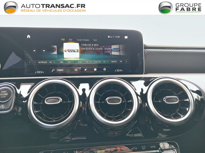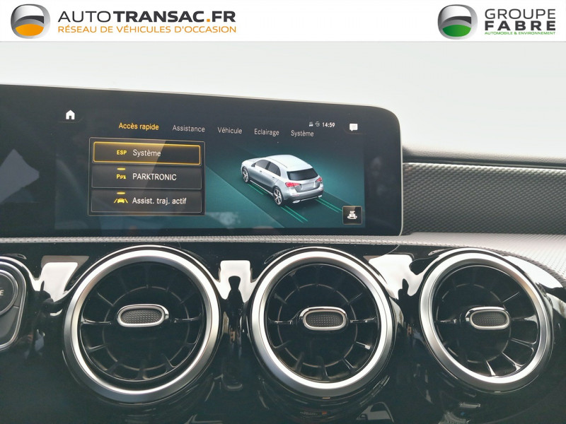 Boîte de vitesse automatique 7G-DCT / Désactivation automatique de l'airbag passager / Frein de stationnement électrique / Jantes alliage 17" à 10 branches finition Argent Vanadium, pneus 205/55 R17, 6.5Jx17 / Navigation par disque dur / Projecteurs LED hautes performances / Assistant limitation de vitesse / Avertisseur d'oubli des ceintures AR / Capot moteur actif / Car-to-X Communication / Certification EURO-NCAP / Ciel de pavillon en tissu Noir / Combiné d'instrumentation digitale avec écran tactile / Commande vocale et assistant personnel activable grâce à "Hey Mercedes" / Direction paramétrique / Double porte-gobelets / DYNAMIC SELECT / Ecran média 10" / Eléments de design chromés / Equipement pour radio digitale / Essieu AR à bras combinés / Filet de rangement au dos des sièges AV / Fonctionnalités élargies MBUX / Fret / Grille de calandre diamant avec lamelle / Jupes latérales couleur carrosserie / Kit anticrevaison TIREFIT / Ligne de ceinture chromée / Live Traffic Information / MBUX système multimédia / Norme EURO 6 / Pare-soleil avec miroir de courtoisie éclairé / Pavé tactile TOUCHPAD / Progressive Line / Range-lunettes intégré / Réservoir AdBlue / Rétroviseurs extérieurs électriques avec rappel de clignotants / Sièges AV Confort / Sortie d'echappement chromée / Standard Europe / Suspension confort surbaissée / Système d'appel d'urgence Mercedes-Benz / Tapis de sol en velours