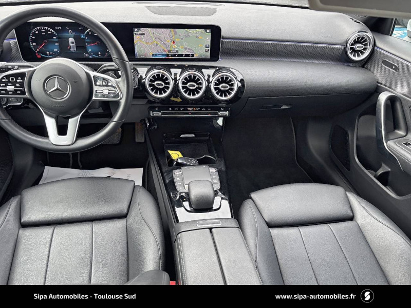 ABS (anti-blocage de roues), ASR (antipatinage), BAS (freinage d'urgence assisté) / ADAPTATIVE BRAKE avec fonction HOLD et système d'aide au démarrage en côte, préremplissage et séchage des freins par freinage en cas de pluie / Affichage de l'état des ceintures AR (bouclées/non bouclées) sur le combiné d'instruments / Aide au stationnement active avec capteurs à ultrasons AV/AR / Airbags latéraux pour le conducteur et le passager AV (airbags combinés thorax et bassin) / Antenne GPS / Assistant de limitation de vitesse par lecture des panneaux grâce à une caméra / Assistant de stabilisation en cas de vent latéral / Assistant limitation de vitesse / ATTENTION ASSIST / Baguettes de ligne de ceinture et entourages de vitres chromés / Boîte de vitesse automatique 7G-DCT / Buses de ventilation noirs avec cerclage chromé / Calandre diamant avec pastilles noires et lamelle avec insert chromé / Capot moteur actif / Car-to-X Communication / Certification EURO-NCAP / Ciel de pavillon en tissu Noir / Connexion Bluetooth pour téléphone portable / Console centrale en finition noir brilliant / Désactivation automatique de l'airbag passager / Direction paramétrique / Documents COC Euro 6 Partie II / Double porte-gobelets / DYNAMIC SELECT / DYNAMIC SELECT avec 4 modes de conduite (ECO - sauf boîte mécanique, Confort, Sport et Individual) / Ecran média 10,25" / Eléments de design chromés / Essuie-glaces avec détecteur de pluie / Feux de stop adaptatifs / Filet de rangement au dos des sièges AV / Filtre à particules pour moteur essence / Fixations iSize pour siège-enfant avec sangle Top Tether aux places extérieures AR / Fonction de démarrage sans clé KEYLESS-GO / Fonctionnalités élargies MBUX / Freinage d'urgence assisté actif (BAS) / Frein de stationnement électrique / Garniture en Tissu/Similicuir ARTICO Noir / Inserts décoratifs façon Carbone / Instrumentation digitale avec écran central 7" (18 cm) avec technologie tactile / Interface USB-C dans le vide-poches et 2 interfaces USB-C sur la console centrale AR / Jantes alliage 17" à 5 doubles branches finition Noir mat et Naturel brillant, pneus 205/55 R17, 6.5Jx17 / Kit anticrevaison TIREFIT / MBUX système multimedia / Module de communication LTE pour l'utilisation des services Mercedes connect me / Navigation par disque dur / Norme EURO 6 / Pack Advantage / Pack Rétroviseurs / Pack Visibilité / Pare-soleil avec miroir de courtoisie éclairé / Pavé tactile TOUCHPAD / Prééquipement pour Live Traffic Information / Prééquipement pour service de partage de clé / Préinstallation pour radio digitale / Prise 12 V dans le vide-poches de la console centrale / Progressive Line / Progressive Line / Projecteurs LED hautes performances / Radio digitale / Régulateur de vitesse TEMPOMAT avec limiteur de vitesse / Services à distance / Sièges AV Confort / Sorties d'echappement chromées (non fonctionnelles) / Standard Europe 1 / Système d'appel d'urgence Mercedes-Benz / Système de commande vocale et assistant personnel activable grâce à "Hey Mercedes" / Tapis de sol en velours / Train de roulement confort avec châssis surbaissé / Volant sport multifonction en cuir avec boutons Touch-Control, cache chromé et surpiqûres noires