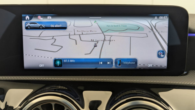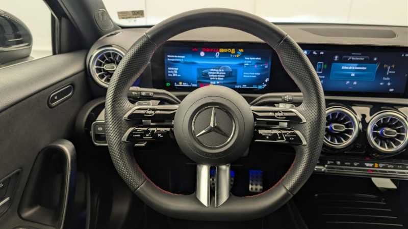 Connexion Bluetooth pour téléphone portable / Ciel de pavillon en tissu Noir / Kit anticrevaison TIREFIT / DYNAMIC SELECT / Régulateur de vitesse TEMPOMAT avec limiteur de vitesse / Système d'appel d'urgence Mercedes-Benz / Radio digitale / Essuie-glaces avec détecteur de pluie / Pare-soleil avec miroir de courtoisie éclairé / Freinage d'urgence assisté actif / Train de roulement confort avec châssis surbaissé / Assistant limitation de vitesse / Boîte de vitesse automatique 7G-DCT / Instrumentation digitale avec écran 10" / Vide-poche sur la console centrale avec couvercle à enrouleur / Assistant de stabilisation en cas de vent latéral / Airbags latéraux pour le conducteur et le passager AV (airbags combinés thorax et bassin) / Fixations iSize pour siège-enfant avec sangle Top Tether aux places extérieures AR / Fonction de démarrage sans clé KEYLESS-GO / ABS (anti-blocage de roues), ASR (antipatinage), BAS (freinage d'urgence assisté) / Assistant de limitation de vitesse par lecture des panneaux grâce à une caméra / Dossiers des sièges AR rabattables selon un rapport de 40/20/40 / Jupe AV AMG avec splitter AV en finition chromée / ADAPTATIVE BRAKE avec fonction HOLD et système d'aide au démarrage en côte, préremplissage et séchage des freins par freinage en cas de pluie / ATTENTION ASSIST / Direction paramétrique avec assistance asservie à la vitesse / Services à distance / Pack USB Plus : 2 ports USB-C sous l'accoudoir central 1 port USB-C pour l'AR 1 port USB-C dans le vide-poche Prise 12 V dans le vide-poches / Navigation MBUX Premium / Ecran média 10,25" / Pédalier AMG sport en acier inoxydable brosséà picots en caoutchouc noirs / Fonctionnalités élargies MBUX / Garniture en Similicuir ARTICO/microfibre MICROCUT Noir / Accoudoir rabattable dans la console centrale pour le conducteur et le passager AV / Buses de ventilation dans le ton noir avec bague extérieure en argent mat / Inserts décoratifs en microfibre MICROCUT / Protections de bas de caisse AMG dans le ton carrosserie / Jupe AR AMG avec enjoliveurs de sortie d?échappement apparents et insert décoratif noir / Capot moteur avec bossages stylisés / Pré-équipement pour la surveillance du véhicule incluant la localisation de celui-ci et la notification en cas de mouvement / Rappel de présence / Calandre avec pattern étoilé chromé, étoile centrale Mercedes et lamelle unique chromée / Volant Sport multifonction en cuir Nappa avec surpiqûres rouges, méplat dans la partie inférieure, perforations dans la zone de préhension, commandes tactiles à gauche et à droite et palettes de changement de rapport au volant chromées argentées / Baguettes de ligne de ceinture et entourages de vitres noir brillant / Antenne pour GPS / Jantes alliage AMG de 45,7 cm (18") à 5 doubles branches, finition gris trémolite/naturel brillant / Volant à 3 double branches / Etriers de frein AV avec monogramme Merceds-Benz / Module de communication LTE pour l'utilisation des services connectés / AMG Line En liaison avec AMG Line Advanced Plus ou avec AMG Line Premium ou avec AMG Line Premium Plus ou avec Special Edition / Surpiqûres contrastées noires (en liaison avec la garniture en ARTICO/microfibre MICROCUT noire) / Feux de stop adaptatifs / Ceintures de sécurité noires / Frein de stationnement électrique / Filet de rangement au dos des sièges AV / Pack Visibilité : Essuie-glaces avec détecteur de pluie Pare-soleil avec miroir de courtoisie éclairé Lampes d'éclairage intérieur AV et AR, du plancher, du porte gobelets et spots de lecture / Direction paramétrique / Double porte-gobelets /