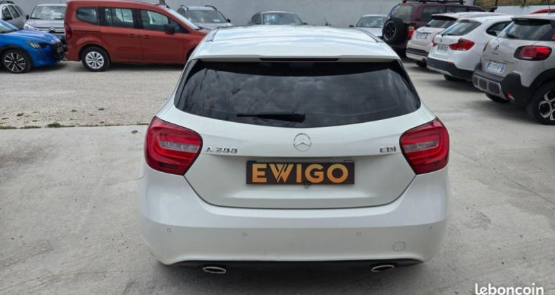 Mercedes Classe A 200D EXECUTIVE 2.2 CDI 136CH berline, blanc, 7 cv, 5 portes, première mise en circulation le 08/01/2015, garantie 6 mois. - NOS SERVICES ET PRESTATIONS COMPLÉMENTAIRES - - Visite virtuelle : avant de vous déplacer, visualisez votre futur véhicule sous toutes ses coutures . Contactez-nous pour en voir plus ! - Extension de garantie jusqu'à 60 mois. - Solutions de Financement de 12 à 84 mois. - Livraison dans toute la France métropolitaine (sur devis). - Reprise possible de votre ancien véhicule. - Les informations délivrées par cette annonce sont non contractuelles et données à titre indicatif. Packs disponibles (véhicules éligibles au Label) - Pack Clés en Main - 691 € TTC(¹)(²) Démarches (hors carte grise) | 1/4 de carburant | Nettoyage First | Garantie 6 mois | Label inclus? - Pack Sérénité - 891 € TTC(¹)(²)- Démarches (hors carte grise) | 1/2 de carburant | Nettoyage Confort | Garantie 12 mois | Label inclus? - Pack Prestige - 1.091 € TTC(¹)(²) Démarches (hors carte grise) | Plein complet | Nettoyage Prestige | Garantie 12 mois | Label inclus? + Surprise du chef - (¹) Les véhicules non éligibles au Label bénéficient de tarifs préférentiels. Veuillez contacter votre conseiller pour obtenir les conditions tarifaires applicables. (²) Tarif pour les véhicules deux roues motrices dont la valeur de vente est inférieure à 60 000 € TTC. - Véhicule visible uniquement sur rendez vous ! EWIGO SAINT ETIENNE 1 Allée des Goutterons 42160 ANDREZIEUX-BOUTHEON [Coordonnées masquées] [Coordonnées masquées] 5 places OPTIONS ET ÉQUIPEMENTS : Audio - Télécommunications : - Bluetooth - GPS - prise audio auxiliaire - radio numérique - système de navigation Conduite : - Accès main libre - Boîte de vitesse manuelle - Système d'accès sans clé - Accès et démarrage sans clé - allumage automatique des feux - clé mains-libres - limiteur de vitesse Couleur : - Peinture métallisée Extérieur : - Capteurs d'aide au stationnement arrière - Capteurs d'aide au stationnement avant - Déflecteur - Sortie d'échappement chromée - caméra de recul - jantes : aluminium - projecteurs bi-xénon - projecteurs xénon - rétroviseurs rabattables - système d'aide au stationnement - toit ouvrant - toit ouvrant panoramique - toit ouvrant électrique Intérieur : - Volant alu/cuir - Porte gobelet avant - accoudoir central - chauffage stationnaire - climatisation : automatique - climatisation multi zone - direction assistée - fermeture centralisée - non fumeur - verrouillage à distance - vitres électriques - volant réglable hauteur - volant réglable profondeur Pack : - GPS couleur - nombre de rapports : 6 vitesses - volant multifonctions - volant réglable Sécurité : - ABS - ESP - airbag arrière - airbag coté passager - anti-patinage - fixations ISOFIX - système d'appel d'urgence Autres équipements et informations : - Double des clés - Factures d'entretien - Classe Crit'air : 2 - Puissance kilowatt : 100 kw - dimension des jantes : 18 pouces - puissance réelle : 136 ch - émission CO2 : 114 g/km - état : bon Référence annonce : d140036