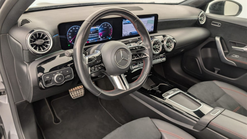 Sièges conducteur et passager avant chauffants / Connexion Bluetooth pour téléphone portable / Ciel de pavillon en tissu Noir / Kit anticrevaison TIREFIT / Freinage d'urgence assisté actif (BAS) / Surpiqûres contrastées rouges / Régulateur de vitesse TEMPOMAT avec limiteur de vitesse / Système d'appel d'urgence Mercedes-Benz / Radio digitale / Essuie-glaces avec détecteur de pluie / Pare-soleil avec miroir de courtoisie éclairé / Habillages des bas de caisse AMG peints dans le ton carrosserie / Module de communication LTE pour l'utilisation des services Mercedes connect me / Train de roulement confort avec châssis surbaissé / Assistant limitation de vitesse / Boîte de vitesse automatique 7G-DCT / AMG Line / Instrumentation digitale avec écran 10" / Vide-poche sur la console centrale avec couvercle à enrouleur / Assistant de stabilisation en cas de vent latéral / Système de commande vocale et assistant personnel activable grâce à "Hey Mercedes" / Airbags latéraux pour le conducteur et le passager AV (airbags combinés thorax et bassin) / Fixations iSize pour siège-enfant avec sangle Top Tether aux places extérieures AR / ABS (anti-blocage de roues), ASR (antipatinage), BAS (freinage d'urgence assisté) / Assistant de limitation de vitesse par lecture des panneaux grâce à une caméra / Etriers de frein AV avec monogramme "Mercedes-Benz" et disques perforés / ADAPTATIVE BRAKE avec fonction HOLD et système d'aide au démarrage en côte, préremplissage et séchage des freins par freinage en cas de pluie / ATTENTION ASSIST / Direction paramétrique avec assistance asservie à la vitesse / Pack USB Plus : 2 ports USB-C sous l'accoudoir central 1 port USB-C pour l'AR 1 port USB-C dans le vide-poche Prise 12 V dans le vide-poches / Navigation MBUX Premium / Pédalier AMG sport en acier inoxydable brosséà picots en caoutchouc noirs / Fonctionnalités élargies MBUX / Garniture en Similicuir ARTICO/microfibre MICROCUT Noir / Type Advanced Plus / Accoudoir rabattable dans la console centrale pour le conducteur et le passager AV / DYNAMIC SELECT avec 4 programmes de conduite (ECO, Confort, Sport et Individual) / Inserts décoratifs en microfibre MICROCUT / Rappel de présence / Feux de stop adaptatifs / Frein de stationnement électrique / Filet de rangement au dos des sièges AV / Pack Visibilité : Essuie-glaces avec détecteur de pluie Pare-soleil avec miroir de courtoisie éclairé Lampes d'éclairage intérieur AV et AR, du plancher, du porte gobelets et spots de lecture / Direction paramétrique / Double porte-gobelets /