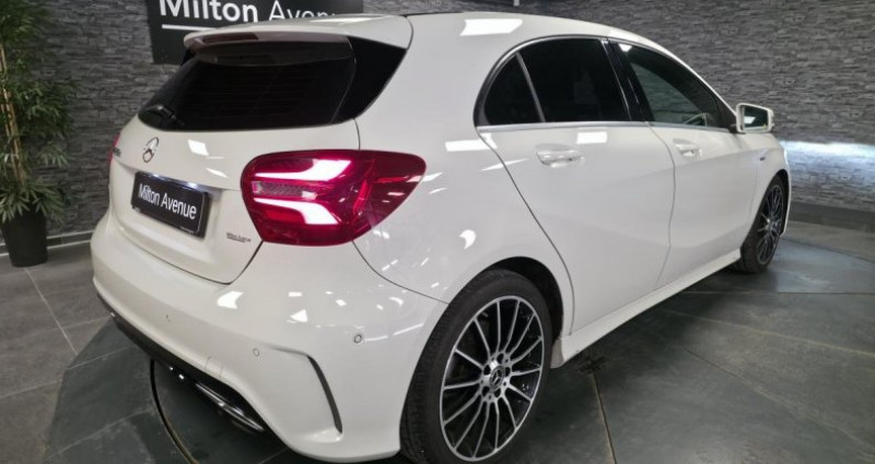 ======= OPTIONS ======= Climatisation THERMATIC avec réglage manuel de la température et de la distribution d'air Détecteur d'angle mort Rétroviseurs extérieurs rabattables électriquement et rétroviseurs extérieur gauche et intérieur jour nuit automatique Sièges avant avec soutien lombaire réglable Sièges avant chauffants Toit ouvrant panoramique électrique avec store pare-soleil électrique, fonction de fermeture en cas de pluie et protection anti-pincement ======= EQUIPEMENTS DE SERIE ======= Éléments décoratifs intérieurs et buses d'aération chromés ABS (antiblocage de roues) et ASR (antipatinage) Accoudoir avant avec vide-poches Accoudoirs dans les portes et la console centrale avec surpiqûres contrastantes gris cristal ADAPTIVE BRAKE avec fonction HOLD et aide au démarrage en côte Airbag genoux conducteur Airbags bassin intégrés aux sièges conducteur et passager avant Airbags frontaux à plusieurs seuils de déclenchement pour le conducteur et le passager avant Airbags latéraux et airbags rideaux Allumage automatique des projecteurs Attention Assist : système de détection de somnolence Audio 20 CD avec écran couleur 17,8 cm (7), pré-installation pour Garmin MAP PILOT, radio, double tuner, lecteur CD, Bluetooth, 2 ports USB et 1 SD card Avertisseur de perte de pression des pneus Badge EDITION sur les ailes avant déselectionnable Baguettes de seuil chromées Banquette arrière rabattable 1 3-2 3 BAS (freinage d'urgence assisté) Boîte à gants éclairée Boîte de vitesses automatique à double embrayage 7 rapports 7G-DCT avec palettes de commandes au volant Capot moteur actif Capteur de pluie Ceintures de sécurité à 3 points à toutes les places Ceintures de sécurité noires à bandes contrastantes de couleur blanche Cendriers à l'avant et à l'arrière Cerclages blancs sur les buses de ventilation Ciel de pavillon en tissu noir Clé design chromée Clignotant avec commande confort par impulsions COLLISION PREVENTION ASSIST PLUS: système d'avertissement des risques de collision avec assistant de freinage adaptatif Colonne de direction réglable mécaniquement en hauteur et en profondeur Combiné d'instruments à 2 cadrans analogiques et visuel multifonctions Connexion Bluetooth pour téléphone portable et clavier numérique intégré Contrôle de la pression des 4 pneus et alerte conducteur dans le combiné d'instruments Contre-portes en microfibres DINAMICA Détecteur d'occupation du siège passager avant Direction paramétrique sport Double sortie d'échappement ovale chromée Eclairage de secours en cas d'accident ESP (régulation de comportement dynamique) Feux antibrouillard arrière Feux de stop adaptatifs Feux halogènes Film décoratif Filtre à particules Fonction d'arrêt redémarrage Stop Start ECO avec commutateur de désactivation manuelle Frein de parking électrique Garnitures intérieures en microfibre DINAMICA similicuir ARTICO avec surpiqûres contrastées rouges Indicateur de température extérieure Indicateur dynamique de maintenance (ASSYST PLUS) Insert décoratif AMG en microfibre DINAMICA de couleur noire Interface média USB dans la console centrale (2 ports USB et 1 port SD Card) ISOFIX : fixations des sièges-enfants arrière (places extérieures) Jantes alliage AMG 46 cm (18) design multibranches avec pneus 225 40 R18 Kit anti-crevaison TIREFIT Lève-vitres électrique (x4) à commande séquentielle et dispositif anti-pincement Levier de vitesses en cuir perforé avec surpiqûres contrastantes gris cristal et appliques chromées argentées Mercedes connect me : Système d'Appel d'Urgence Mercedes-Benz Navigateur Internet sur l'écran central Ordinateur de bord Pédalier sport en acier inoxydable brossé avec picots en caoutchouc Pack AMG Line Extérieur Pack d'éclairage intérieur Pack Garmin Pack Sport Black Pare-chocs couleur carrosserie Peinture Blanc cirrus ou Noir cosmos métallisée Planche de bord revêtue de similicuir ARTICO avec surpiqûre contrastante gris cristal Poignées de portes couleur carrosserie Projecteurs hautes performances à technologie LED comprenant les feux de jours et la fonction d'éclairage en bleu Coming Home Réglage électrique de la profondeur d'assise Rétroviseurs extérieurs électriques chauffants et asphériques avec rappels de clignotant intégrés Sécurité enfant avec verrouillage manuel des portes arrière et électrique des vitres arrière Sélecteur multifonctions chromé Siège conducteur réglable manuellement en hauteur Sièges sport à garniture en similicuir ARTICO microfibre DINAMICA de couleur noire avec surpiqûres et bandes contrastantes sur les sièges en blanc gris cristal Sortie d'échappement dissimulée dans le pare-choc arrière Tapis de sol en velours côtelé avec liseré dans le coloris noir, surpiqûre contrastante gris cristal et monogramme « Edition » TEMPOMAT (régulateur de vitesse) et SPEEDTRONIC (limiteur de vitesse) Verrouillage centralisé à télécommande avec fonction verrouillage automatique désactivable Vitres teintées vertes Volant sport multifonction à 3 branches en cuir, avec méplat dans la partie inférieure, garniture en microfibre DINAMICA noire au niveau de la zone de préhension, 12 touches de commande et cache chromé argenté Nb. Vitesses : 7 Conso Mixte : l/100