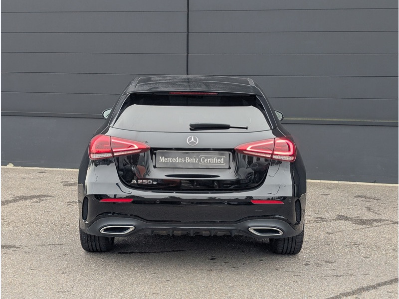 Pavé tactile Touchpad|Instrumentation digitale avec écran 10 / 25 WIDESCREEN|Contrôle de la pression des pneus |Train de roulement confort|Câble adaptateur USB|Rétroviseurs extérieurs rabattables électriquement|Avertisseur de limitation de vitesse |Ciel de pavillon en tissu noir|Réception radio numérique DAB|Pare-soleil avec miroir de courtoisie éclairé|MBUX système multimédia|Assistant feux de route Plus |Prise de chargement|Palettes de changement de rapport au volant DIRECT SELECT|Accoudoir central arrière|Services de charge et services à distance Plus|Pré équipement pour Live Traffic Information|Système de navigation par disque dur|Eclairage d ambiance |Modes de conduite|Récupération d'énergie à assistance radar|AMG Line|Dotation de série pour A 250 e|Câble de charge pour prise domestique / 5 m / type 2|Câble de charge pour boîtier mural et bornes de recharge publiques / 5m / droit / 11kW|Kit TIREFIT |Avertisseur sonore pour piétons|DYNAMIC SELECT AMG |Volant sport multifonction en cuir Nappa|Moteur à injection 4 cyl.|Pack Rétroviseurs |Module de communication (LTE) pour l'utilisation des services Mercedes me connect|Prééquipement pour système de navigation|Baguettes de seuil éclairées|Pack Confort sièges|Protection piétons|Pack Visibilité |Système d appel d urgence Mercedes-Benz |Essuie-glaces avec détecteur de pluie|Double porte-gobelets |Banquette arrière rabattable 40/20/40|Filet au dos des sièges avant|Antenne GPS|Freinage d'urgence assisté actif|Rétroviseur intérieur et rétroviseur extérieur côté conducteur à commutation jour/nuit automatique|Avertisseur de franchissement de ligne actif|Aide au Parking (APA) avec PARKTRONIC |Prééquipement pour service de partage de clé|Prééquipement pour les services à distance et de navigation|Baguettes de seuil avec inscription Mercedes-Benz à l avant |Vide-poche sur la console centrale avec couvercle à enrouleur|Kit carrosserie AMG|Prééquipement pour radio numérique DAB|Sièges sport à l avant|Préclimatisation|Soutien lombaire à 4 réglages |Caméra de recul|Siège passager avant à réglages électriques avec fonction Mémoires |Siège passager avant à réglages électriques avec fonction Mémoires|Siège conducteur à réglages électriques avec fonction Mémoires|Toit ouvrant panoramique |Toit ouvrant panoramique |Régulateur de vitesse TEMPOMAT avec limiteur de vitesse |Climatisation automatique THERMATIC à 2 zones |Projecteurs MULTIBEAM LED |Chargeur embarqué 3 / 7 kW AC|Vitrage athermique foncé pour la lunette et les vitres latérales arrière |Ecran média haute résolution 10 / 25 |Sièges conducteur et passager avant chauffants|KEYLESS-GO|Pack Stationnement avec caméra de recul|Pack Night |Pack Sport Black |Pack Premium Plus |Jantes alliage AMG 48 / 3 cm (19 ) multibranches noires