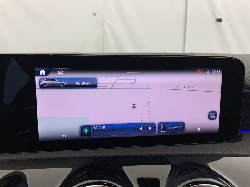 Connexion Bluetooth pour téléphone portable / Ciel de pavillon en tissu Noir / Kit anticrevaison TIREFIT / DYNAMIC SELECT / Régulateur de vitesse TEMPOMAT avec limiteur de vitesse / Système d'appel d'urgence Mercedes-Benz / Radio digitale / Essuie-glaces avec détecteur de pluie / Pare-soleil avec miroir de courtoisie éclairé / Assistant limitation de vitesse / Instrumentation digitale avec écran 10" / Vide-poche sur la console centrale avec couvercle à enrouleur / Assistant de stabilisation en cas de vent latéral / Boîte de vitesse automatique 8G-DCT / Airbags latéraux pour le conducteur et le passager AV (airbags combinés thorax et bassin) / Fixations iSize pour siège-enfant avec sangle Top Tether aux places extérieures AR / Gilet de sécurité pour le conducteur / Prise de recharge / Chargeur embarqué 3,7 kW AC / ABS (anti-blocage de roues), ASR (antipatinage), BAS (freinage d'urgence assisté) / Assistant de limitation de vitesse par lecture des panneaux grâce à une caméra / Dossiers des sièges AR rabattables selon un rapport de 40/20/40 / ADAPTATIVE BRAKE avec fonction HOLD et système d'aide au démarrage en côte, préremplissage et séchage des freins par freinage en cas de pluie / ATTENTION ASSIST / Câble de charge pour prise secteur, 5 m, droit / Direction paramétrique avec assistance asservie à la vitesse / Pack USB Plus : 2 ports USB-C sous l'accoudoir central 1 port USB-C pour l'AR 1 port USB-C dans le vide-poche Prise 12 V dans le vide-poches / Ecran média 10,25" / Câble de charge pour boîtier mural et bornes de recharge publiques, 5 m, droit, 22 kW / Pédalier AMG sport en acier inoxydable brosséà picots en caoutchouc noirs / Avertisseur sonore pour les piétons / Garniture en Similicuir ARTICO/microfibre MICROCUT Noir / Accoudoir rabattable dans la console centrale pour le conducteur et le passager AV / Inserts décoratifs en microfibre MICROCUT / Capot moteur avec bossages stylisés / Pré-équipement pour la surveillance du véhicule incluant la localisation de celui-ci et la notification en cas de mouvement / Rappel de présence / Antenne pour GPS / Pré-équipement pour services à distance via l'application Mercedes me sur smartphone incluant: - Réglage de la température intérieure, - Envoi d'adresses au système de navigation, - Verrouillage des portes / Surpiqûres contrastées noires (en liaison avec la garniture en ARTICO/microfibre MICROCUT noire) / Service connecté : Fonctionnalités élargies MBUX / Service connecté : Navigation MBUX Premium / Service connecté : Prééquipement pour les services à distance et de navigation / Service connecté : Services de charge et services à distance Plus / Pré-équipement pour MB.Charge public (utilisation gratuite pendant 1 an à partir de l'activation) incluant l'accès au réseau de bornes de recharge publique partout en Europe / Appuie-tête intégraux sur les sièges AV / Feux de stop adaptatifs / Ceintures de sécurité noires / Frein de stationnement électrique / Pack Visibilité : Essuie-glaces avec détecteur de pluie Pare-soleil avec miroir de courtoisie éclairé Lampes d'éclairage intérieur AV et AR, du plancher, du porte gobelets et spots de lecture / Train de roulement confort / Double porte-gobelets /