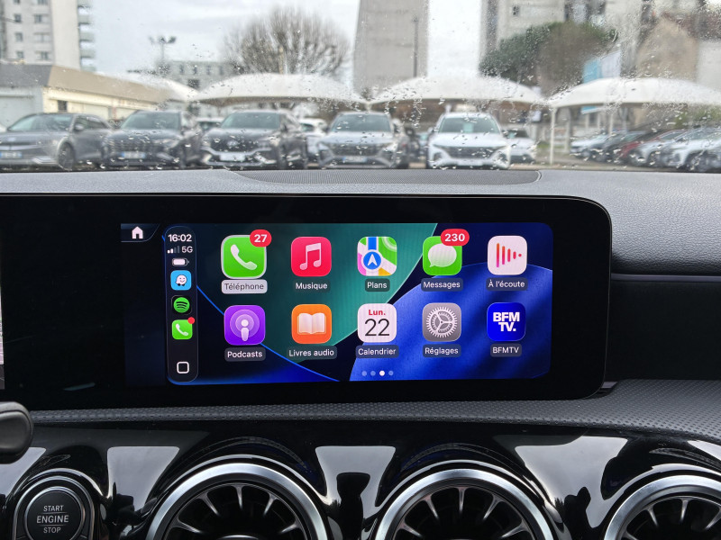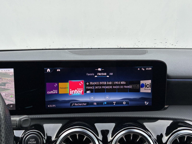 ADAPTATIVE BRAKE avec fonction HOLD et système d'aide au démarrage en côte, préremplissage et séchage des freins par freinage en cas de pluie / Antenne GPS / Filtre à charbons actifs contre la poussière, la suie et le pollen pour système de climatisation / Frein de stationnement électrique / Jantes alliage AMG 18" à 5 doubles branches gris trémolite/naturel brillant / Navigation MBUX Premium / Pack USB Plus / Projecteurs LED hautes performances / Prééquipement pour les services à distance et de navigation / Volant Sport multifonction en cuir Nappa avec méplat dans la partie inférieure, perforé dans la zone de préhension avec commandes tactiles à gauche et à droite / ABS (anti-blocage de roues), ASR (antipatinage), BAS (freinage d'urgence assisté) / Accoudoir rabattable dans la console centrale pour le conducteur et le passager AV / Airbags latéraux pour le conducteur et le passager AV (airbags combinés thorax et bassin) / AMG Line / Assistant de limitation de vitesse par lecture des panneaux grâce à une caméra / Assistant de stabilisation en cas de vent latéral / Assistant limitation de vitesse / ATTENTION ASSIST / Avertisseur sonore pour les piétons / Buses de ventilation dans le ton noir avec bague extérieure en argent mat / Calandre avec motif étoilé Mercedes-Benz en chrome, étoile centrale Mercedes et lamelle unique chromées / Chargeur embarqué 3,7 kW AC / Ciel de pavillon en tissu Noir / Connexion Bluetooth pour téléphone portable / Câble de charge pour boîtier mural et bornes de recharge publiques, 5 m, droit, 11 kW / Câble de charge pour prise secteur, 5 m, droit / Direction paramétrique avec assistance asservie à la vitesse / Documentation en français / Double porte-gobelets / DYNAMIC SELECT / DYNAMIC SELECT avec 4 programmes de conduite (ECO, Confort, Sport et Individual) / Ecran média 10,25" / Essuie-glaces avec détecteur de pluie / Etriers de frein AV avec monogramme "Mercedes-Benz" et disques perforés / Feux de stop adaptatifs / Filet de rangement au dos des sièges AV / Fixations iSize pour siège-enfant avec sangle Top Tether aux places extérieures AR / Fonction de démarrage sans clé KEYLESS-GO / Fonctionnalités élargies MBUX / Freinage d'urgence assisté actif (BAS) / Habillages des bas de caisse peints dans le ton carrosserie / Inserts décoratifs en microfibre MICROCUT / Instrumentation digitale avec écran 10" / Kit anticrevaison TIREFIT / Module de communication LTE pour l'utilisation des services Mercedes connect me / Pare-soleil avec miroir de courtoisie éclairé / Prise 12 V dans le vide-poches de la console centrale / Prise de recharge / Pré-équipement pour services à distance / Prééquipement pour service de partage de clé / Pédalier AMG sport en acier inoxydable brosséà picots en caoutchouc noirs / Radio digitale / Régulateur de vitesse TEMPOMAT avec limiteur de vitesse / Services de charge et services à distance Plus / Services à distance / Services à distance Plus / Soutien lombaire à 4 réglages / Surpiqûres contrastées rouges / Système d'appel d'urgence Mercedes-Benz / Système de commande vocale et assistant personnel activable grâce à "Hey Mercedes" / Train de roulement confort / Type Advanced Plus / Vide-poche sur la console centrale avec couvercle à enrouleur