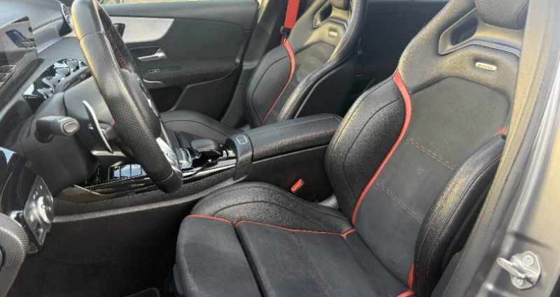 Cylindrée : 1991 cm3 Nb. Vitesse : 7 - 4MATIC Performance AMG - ABS - Adaptateur de vitesse - Affichage de l'état des ceintures AR (bouclées/non bouclées) sur le combiné d'instruments - Aide au démarrage en côte - Airbag genoux - Allumage automatique des feux - AMG Line - Assistant de franchissement de ligne actif - Assistant limitation de vitesse - Avertisseur d'oubli des ceintures AR - Banquette AR rabattable - Boîte de vitesse automatique Sport à 7 rapports AMG SPEEDSHIFT DCT - Buses de ventilation avec cerclage chromé et insert rouge - Calandre AMG à double lamelle avec monogramme 'AMG' - Caméra de recul - Capot moteur actif - Car-to-X Communication - Ceintures de sécurité Designo Rouges - Certification EURO-NCAP - Ciel de pavillon en tissu Noir - Climatisation automatique confort 'THERMOTRONIC' - Combiné d'instrumentation digitale avec écran tactile - Commande vocale et assistant personnel activable grâce à 'Hey Mercedes' - Console centrale AMG en finition noir brilliant - Contrôle de pression des pneumatiques - Déflecteur AMG sur le toit - Désactivation automatique de l'airbag passager - Détecteur de pluie - Direction paramétrique - Direction paramétrique AMG - Documents COC Euro 6 Partie II - Double porte-gobelets - DYNAMIC SELECT - DYNAMIC SELECT AMG avec 5 modes de conduite - Ecran média 10' - Elargissement du passage de roue pour jantes AMG - Equipement pour radio digitale - ESP (régulation de comportement dynamique) à 3 modes: ON/SPORT/OFF - Essieu AR multibras - Essuie-glaces automatiques - Essuie-glaces avec détecteur de pluie - Filet de rangement au dos des sièges AV - Filtre à particules pour moteur essence - Fonctionnalités élargies MBUX - Frein de stationnement électrique - Garniture en Similicuir ARTICO/microfibre DINAMICA Noir - Grand réservoir carburant - Grille de calandre diamant avec pastilles chromées et lamelle - Indicateur de ceinture de sécurité - Inserts chromés sur les lamelles des prises d?air et splitter AV chromé - Inserts décoratifs en Aluminium Clair à stries longitudinales - Jantes alliage AMG 18' bicolores à 5 doubles branches pneus 225/45 R18 - Jantes alliage AMG de 45, 7 cm (18') à 5 doubles branches - Jupe AR AMG avec diffuseur spécifique à quatre lamelles verticales - Jupe AR AMG avec insert décoratif chromé - Jupe AV AMG - Jupe AV avec déflecteurs sur les prises d'air extérieures - Kit anticrevaison TIREFIT - Kit carrosserie AMG - Ligne de ceinture chromée - Live Traffic Information - MBUX système multimédia - MBUX système multimedia - Monogramme 'TURBO 4MATIC' sur les ailes AV - Navigation par disque dur - Norme EURO 6 - Ordinateur de bord - Pack Advantage - Pack Avantages - Pack Confort - Pack Rétroviseurs - Pack Stationnement avec caméra de recul - Pack Visibilité - Palettes de changements de rapports - Pare-soleil avec miroir de courtoisie éclairé - Pavé tactile TOUCHPAD - Pédalier Sport en aluminium avec picots - Peinture non métallisée Noir - Pré-équipement pour service d'autopartage - Pré-installation pour Mercedes-Benz Link - Prééquipement pour Live Traffic Information - Prééquipement pour réglages du véhicule à distance - Prééquipement pour suivi du véhicule à distance - Projecteurs LED hautes performances - Radio digitale - Range-lunettes intégré - Réception radio numérique DAB - Régulateur de vitesse TEMPOMAT avec limiteur de vitesse - Régulateur et limiteur de vitesse - Régulation du comportement dynamique (ESP) à 3 niveaux disponibles via la touche ESP - Réservoir de carburant 51 L - Rétroviseurs électriques rabattables - Rétroviseurs extérieurs électriques avec rappel de clignotants - Sièges AV Sport - Sièges sport avec garnitures en similicuir ARTICO/DINAMICA noir et surpiqûres rouges - Sortie d'echappement chromée - Sorties d?échappement rondes chromées de 90 mm de diamètre - Standard Europe - Suspension AMG - Système d'appel d'urgence Mercedes-Benz - Système d'echappement Sport AMG - Système d'échappement sport AMG - Système de commande vocale et assistant personnel activable grâce à 'Hey Mercedes' - Système de freinage hautes performances AMG avec étriers de frein dans le ton argent et monogramme AMG noir à l´AV - Système de navigation Mercedes-Benz avec données cartographiques intégralemen - Système multimédia MBUX - Système multimédia MBUX avec menu AMG spécifique et 3 designs d?affichage : Classique - Tapis de sol AMG - Train de roulement AMG avec éléments de suspension et d'amortissement spécifiques - Train de roulement sport AMG - Volant Performance AMG 3 branches en microfibre Dinamica avec méplat dans la partie inférieure - Volant Performance AMG en Cuir Nappa