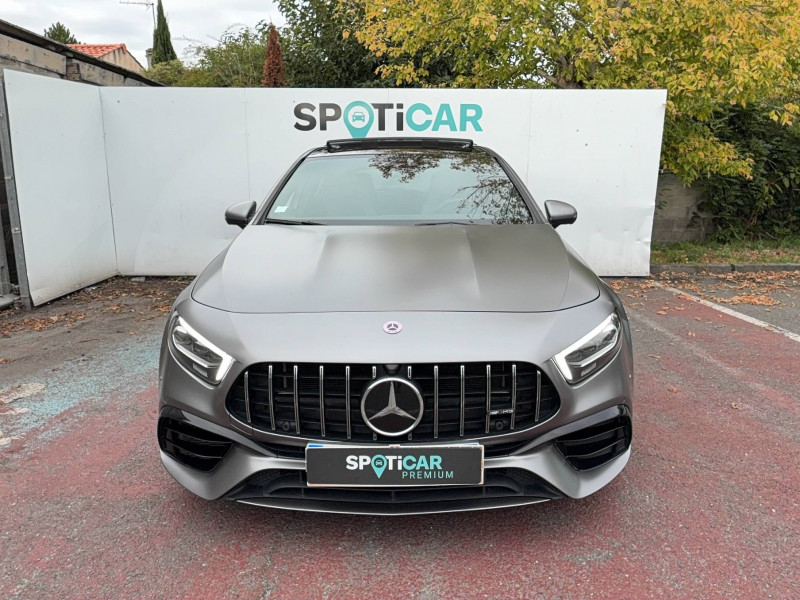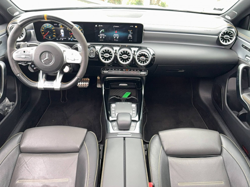 Affichage de l'état des ceintures AR (bouclées/non bouclées) sur le combiné d'instruments / Ailes AMG élargies avec inscription TURBO 4MATIC+ / AMG Driver's package Vitesse maxi de 270 km/h / AMG Real Performance Sound / Application AMG Track Pace / Assistant limitation de vitesse / Baguettes de seuil éclairées avec l'inscription Mercedes-Benz / Boîte de vitesse automatique à 8 rapports 8G-DCT SPEEDSHIFT AMG / Buses de ventilation avec cerclage chromé et insert rouge / Capot moteur actif / Capot moteur avec bossages / Car-to-X Communication / Certification EURO-NCAP / Ciel de pavillon en tissu Noir / Console centrale AMG en finition noir brilliant / Déflecteur AMG sur le toit / Désactivation automatique de l'airbag passager / Deux doubles enjoliveurs de sorties d'échappement / Direction paramétrique / Documents COC Euro 6 Partie II / Double porte-gobelets / DYNAMIC SELECT / Eclairage d'ambiance / Elargissement du passage de roue pour jantes AMG / Equipement pour radio digitale / Essieu AR multibras / Essuie-glaces avec détecteur de pluie / Etriers de frein peints en rouge / Filet de rangement au dos des sièges AV / Filtre à particules pour moteur essence / Fonctionnalités élargies MBUX / Frein de stationnement électrique / Garniture en Similicuir ARTICO/microfibre DINAMICA Noir avec surpiqûres Jaunes / Habillages de bas de caisse AMG / Inserts chromés sur les lamelles des prises d'air et splitter AV chromé / Inserts décoratifs en aluminium AMG Noir/Argent / Inserts décoratifs en Aluminium Clair à stries longitudinales / Instrumentation digitale avec écran 10" / Jantes alliage AMG 19" 5 doubles branches finition Gris Tantale/Argent, pneus 245/35 R19 / Kit anticrevaison TIREFIT / Kit carrosserie AMG / Ligne de ceinture chromée / Ligne d'échappement AMG avec niveau sonore modulable entre sportivité chargée en émotion et discrétion toute en retenue / MBUX système multimédia / Navigation par disque dur / Norme EURO 6 / Pack Premium Plus / Pack Rétroviseurs / Pack Visibilité / Pare-soleil avec miroir de courtoisie éclairé / Pavé tactile TOUCHPAD / Pédalier Sport en aluminium avec picots / Prééquipement pour Live Traffic Information / Prééquipement pour réglages du véhicule à distance / Pré-équipement pour service d'autopartage / Prééquipement pour suivi du véhicule à distance / Projecteurs MULTIBEAM à LED / Radio digitale / Range-lunettes intégré / Régulateur de vitesse TEMPOMAT avec limiteur de vitesse / Régulation du comportement dynamique (ESP) à 3 niveaux disponibles via la touche ESP / Réservoir de carburant 51 L / Rétroviseurs extérieurs électriques avec rappel de clignotants / Siège conducteur tout électrique avec fonction Mémoires / Siège passager AV électrique avec fonction Mémoires / Soutien lombaire à 4 réglages / Standard Europe / Système d'appel d'urgence Mercedes-Benz / Système d'échappement AMG avec deux doubles sorties rondes de 90 mm / Système de commande vocale et assistant personnel activable grâce à "Hey Mercedes" / Système de freinage hautes performances AMG avec étriers de frein dans le ton argent et monogramme AMG noir à l´AV / Système de sonorisation Surround Burmester / Tapis de sol AMG / Touches du volant AMG / Train de roulement sport AMG / Transmission intégrale 4MATIC+ Performance AMG avec TORQUE CONTROL / Volant Performance AMG en cuir Nappa/microfibre DINAMICA