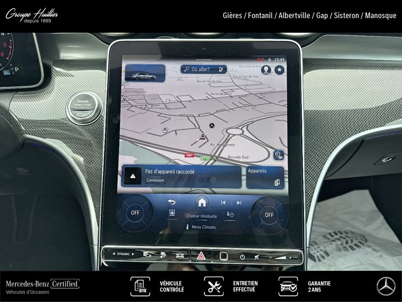 Berline 300 de AMG line, hybride diesel électrique, gris, 03/05/2024, DIGITAL LIGHT, Freinage d urgence assisté actif, Eclairage d ambiance Plus, Pack USB, Suspensions confort, Eclairage d ambiance, Double porte-gobelets, Filtre à particules, Avertisseur sonore pour les piétons, Android Auto, Système d appel d urgence Mercedes-Benz, Assistant de feux de route Plus, Apple CarPlay, DYNAMIC SELECT, Essuie-glaces avec détecteur de pluie, Prééquipement pour service de partage de clé, MBUX système multimédia, Norme d émissions EU6, Affichage tête haute, Sièges conducteur et passager avant chauffants, Système de sonorisation Surround Burmester®, Baguettes de seuil éclairées avec monogramme « Mercedes-Benz », Extérieur AMG Line, Airbag central, AMG Line Intérieur, Accès au streaming musical via système multimédia, Eclairage de proximité avec projection du logo de la marque, HANDS-FREE ACCESS, Vitrage athermique foncé, Système de dépollution BlueTEC Gen4, Volant à gauche, Volant sport multifonctions en cuir Nappa, Pack rangement, Chargeur de téléphone sans fil, DIGITAL LIGHT avec fonction de projection, Ecran conducteur 12,3, Radio digitale, Désactivation automatique de l airbag passager avant, Chargeur en courant alternatif (AC), 11 kW, Module de communication (LTE) pour l'utilisation des services Mercedes me connect, Prééquipement pour services de navigation étendus, Pre-installation pour DISTRONIC, Train de roulement avec correcteur d assiette, Grille de calandre avec motifs Mercedes-Benz, Notice d utilisation en Français, Détecteur de panneaux de signalisation, Prééquipement pour fonction de projection de lignes, Pack Confort KEYLESS-GO, Kit carrosserie AMG, Planche de bord et bas de glace en ARTICO façon Nappa noir, KEYLESS-GO, Pack d'éclairage intérieur, Rétroviseurs intérieur et extérieur (côté conducteur) à commutation jour/nuit automatique, Diesel-Abgasreinigung mit SDPF, TIREFIT, Capot moteur actif, Prééquipement pour radio digitale, Câble de charge pour prise domestique, 5 m, type 2, Banquette arrière rabattable 40/20/40, Contrôle de la pression des pneus, Intégration pour smartphone Android Auto? et Apple CarPlay?, Pack Premium Plus, Inserts décoratifs en structure métallique, Étiquette d identification avec numéro de châssis (VIN), Toit ouvrant panoramique, Pneus été, Climatisation automatique THERMOTRONIC, Scanner à empreinte digitale, Ciel de pavillon en tissu noir, Réalité augmentée pour le système multimédia MBUX, Caméras panoramiques 360°, Personnalisation sonore, Tapis de sol AMG, Câble de charge pour boîtier mural et bornes de recharge publiques, 5m, droit, 22kW, Pack Rétroviseurs, Siège avant gauche à réglage électrique avec fonction mémoire, Assistance aux angles morts, Prééquipement pour services supplémentaires pour les véhicules hybrides rechargeables, Navigation par disque dur, Fonction de démarrage sans clé KEYLESS GO, Fermeture assistée du coffre, Prééquipement pour fonction de projection d'animations, AMG Line Premium Plus, Aide au stationnement active, Rétroviseurs extérieurs rabattables et déployables électriquement, Réservoir de carburant 50L, Pack stationnement avec caméras panoramiques, Prise de charge, Navigation MBUX Premium, Sièges sport à l avant, Siège avant droit à réglage électrique avec fonction mémoire, Fonctionnalités élargies MBUX, Ecran média tactile 11,9, Gilet de sécurité fluorescent pour le conducteur, Boîte de vitesse automatique à 9 rapports 9G-TRONIC, Prééquipement pour fonction de projection de symboles, Pack sièges à réglages électriques avec fonction Mémoires, Affichage de l'état des ceintures arrière sur le combiné d'instruments, Console centrale noir brillant, Services de charge et services à distance Plus, Protection de transport avec crochets d arrimage, Soutien lombaire à 4 réglages, Stoff/ Kunstleder Microfaser, Avertisseur de franchissement de ligne actif, Préinstallation pour Live Traffic Information, Système de récupération de la chaleur résiduelle du moteur, Jantes alliage AMG 45,7 cm (18 ) à 5 branches, gris trémolite/naturel brillant