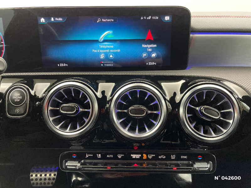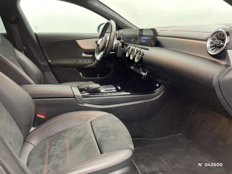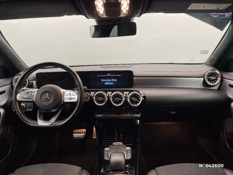 Direction paramétrique Sport / Kit anti-crevaison TIREFIT / DYNAMIC SELECT / Désactivation automatique de l'airbag passager AV / TEMPOMAT (régulateur de vitesse) avec limiteur de vitesse / Système d'appel d'urgence Mercedes-Benz / Conduite à gauche / Radio digitale / Essuie-glaces avec détecteur de pluie / Pare-soleil avec miroir de courtoisie éclairé / Freinage d'urgence assisté actif / Habillages des bas de caisse AMG peints dans le ton carrosserie / Module de communication LTE pour l'utilisation des services Mercedes connect me / Tapis de sol AMG / Pack Advantage / Projecteurs LED hautes performances / Train de roulement confort avec châssis surbaissé / Affichage de l'état des ceintures AR (bouclées/non bouclées) sur le combiné d'instruments / Certification EURO-NCAP / Assistant limitation de vitesse / AMG Line / Fonctionnalités élargies MBUX / Navigation par disque dur / Pavé tactile TOUCHPAD / MBUX système multimedia / Préinstallation pour radio digitale / Ecran média 10" / Prééquipement pour réglages du véhicule à distance / Prééquipement pour suivi du véhicule à distance / Boîte de vitesse automatique 8G-DCT / Manuel d'utilisation en franà§ais / Inserts décoratifs en Aluminium Clair à stries longitudinales / Essieu AR multibras / Aide au parking active avec PARKTRONIC / Jupe AR AMG avec insert décoratif chromé / Prééquipement pour Live Trafic Information / Pédalier AMG en acier inoxydable brossé avec picots en caoutchouc / Assistant de stabilisation en cas de vent latéral / ADAPTIVE BRAKE avec fonction Hold et aide au démarrage en côte, préremplissage et séchage des freins par freinage en cas de pluie / Connexion Bluetooth pour téléphone portable / Pré-équipement pour service d'autopartage / Garnitures en similicuir ARTICO/microfibre DINAMICA Noir avec surpiqures Rouges / ATTENTION ASSIST: Système de détection de somnolence / Prise 12 V dans le vide-poches / Sorties d'echappement apparentes chromées / Grille de calandre diamant à 1 lamelle avec pastilles chromées / Etriers de frein avec logo Mercedes-Benz / Jupe AV AMG avec insert décoratif chromé / Jantes alliage AMG 45,7 cm (18") à 5 doubles branches Gris trémolite/argent, pneus 225/45 R18 / Instrumentation digitale avec écran 7" (18 cm) / Interface USB-C dans le vide-poches et 2 interfaces USB-C sur la console centrale AR / Buses de ventilation noirs avec cerclage chromé / Partie centrale des contre-portes/accoudoirs recouverts de microfibre DINAMICA noire avec doubles surpiqures rouges. / Frein multicollision / Baguettes chromées autour du vitrage latéral / Pack Standard Europe / Système de commande vocale et assistant personnel activable grâce à "Hey Mercedes" / Airbags latéraux pour le conducteur et le passager AV (airbags combinés thorax et bassin) / Fixations iSize pour siège-enfant avec sangle Top Tether aux places extérieures AR / Fonction de démarrage sans clé KEYLESS-GO / Capot moteur actif pour la protection des piétons / Eléments en chrome sur le volant / Volant à gauche / Hayon Easy-Pack à ouverture et fermeture automatiques / Prise 12 V dans le vide-poche de la console centrale / Baguette de ligne de ceinture et entourages de vitres chromés / Calandre diamant avec pastilles chromées et lamelle avec inserts chromé / Système de freinage sport / Frein de stationnement électrique avec fonction Start Assist / Trousse de premiers secours et triangle de signalisation / Sièges AV Sport avec réglages de la hauteur et de l'approche du siège, de l'inclinaison du dossier, de l'inclinaison de l'assise, de la profondeur de l'assise / Bas de caisse AMG dans le ton carrosserie / Services à distance / Jupe AV AMG avec splitter chromé / Sorties d'echappement chromées (non fonctionnelles) / Baguettes de seuil avec inscription "Mercedes Benz" / ABS (antiblocage de roues) et ASR (antipatinage) / Disques de freins AV perforés / Ciel de pavillon en tissu noir / Pack AMG Line / DYNAMIC SELECT avec 4 modes de conduite (ECO - sauf boîte mécanique, Confort, Sport et Individual) / Volant sport multifonction à 3 branches en cuir Nappa, avec méplat, perforations au niveau de la zone de préhension, boutons tactiles Touch-Control, éléments chromés et surpiqures rouges / Kit carrosserie AMG / Prééquipement pour service de partage de clé / Sièges AV Sport avec réglages de la hauteur et de l'approche du siège, de l'inclinaison du dossier, de l'inclinaison de l'assise, de la profondeur de l'assise (siège conducteur uniquement) / Feux de stop adaptatifs / Pédalier sport AMG en acier brossé avec picots en caoutchouc / Filet de rangement au dos des sièges AV / Pack Visibilité / Double porte-gobelets / Pack Rétroviseurs