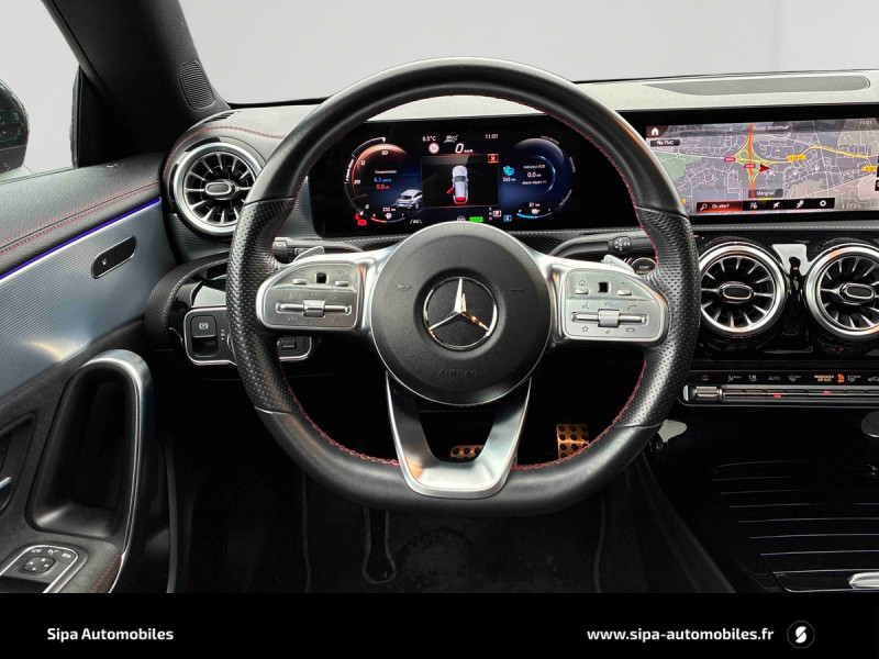 ADAPTIVE BRAKE avec fonction Hold, aide au démarrage en côte, pré-remplissage et séchage des freins par freinage en cas de pluie / Aide au parking active avec PARKTRONIC / Boîte de vitesse automatique 8G-DCT / Désactivation automatique de l'airbag passager AV / Frein de stationnement électrique avec fonction Start Assist / Inserts décoratifs en Aluminium Clair à stries longitudinales / Jantes alliage AMG 45,7 cm (18") à 5 doubles branches Gris trémolite/argent, pneus 225/45 R18 / Navigation par disque dur / Pack AMG Line / Pack Standard Europe / Projecteurs LED hautes performances / Prééquipement pour les services à distance et de navigation / Volant sport multifonction à 3 branches en cuir Nappa, avec méplat, perforations au niveau de la zone de préhension, boutons tactiles Touch-Control, éléments chromés et surpiqûres rouges / ABS (antiblocage de roues) et ASR (antipatinage) / Affichage de l'état des ceintures AR (bouclées/non bouclées) sur le combiné d'instruments / Airbags latéraux pour le conducteur et le passager AV (airbags combinés thorax et bassin) / AMG Line / Assistant de stabilisation en cas de vent latéral / Assistant limitation de vitesse / ATTENTION ASSIST: Système de détection de somnolence / Avertisseur sonore pour piétons / Baguettes de ligne de ceinture et entourages de vitres chromés / Bas de caisse AMG dans le ton carrosserie / Buses de ventilation noirs avec cerclage chromé / Calandre diamant avec pastilles chromées et lamelle avec inserts chromé / Capot moteur actif pour la protection des piétons / Certification EURO-NCAP / Chargeur embarqué 3,7 kW AC / Ciel de pavillon en tissu noir / Connexion Bluetooth pour téléphone portable / Câble de charge pour boîtier mural et bornes de recharge publiques, 5 m, droit, 11 kW / Câble de charge pour prise secteur, 5 m, droit / Direction paramétrique Sport / Disques de freins AV perforés / Double porte-gobelets / DYNAMIC SELECT / DYNAMIC SELECT avec 4 modes de conduite (ECO - sauf boîte mécanique, Confort, Sport et Individual) / Ecran média 10" / Eléments en chrome sur le volant / Essieu AR à bras combinés / Essuie-glaces avec détecteur de pluie / Etriers de frein avec logo Mercedes-Benz / Feux de stop adaptatifs / Filet de rangement au dos des sièges AV / Fixations iSize pour siège-enfant avec sangle Top Tether aux places extérieures AR / Fonction de démarrage sans clé KEYLESS-GO / Fonctionnalités élargies MBUX / Frein multicollision / Freinage d'urgence assisté actif / Grille de calandre diamant à 1 lamelle avec pastilles chromées / Instrumentation digitale avec écran 7" (18 cm) / Interface USB-C dans le vide-poches et 2 interfaces USB-C sur la console centrale AR / Jupe AR AMG avec insert décoratif chromé / Jupe AV AMG avec splitter chromé / Kit anti-crevaison TIREFIT / Manuel d'utilisation en français / MBUX système multimedia / Module de communication LTE pour l'utilisation des services Mercedes connect me / Pare-soleil avec miroir de courtoisie éclairé / Pavé tactile TOUCHPAD / Prise 12 V dans le vide-poches de la console centrale / Prise de recharge / Préinstallation pour radio digitale / Prééquipement pour Live Traffic Information / Prééquipement pour service de partage de clé / Pédalier sport AMG en acier brossé avec picots en caoutchouc / Radio digitale / Régulateur de vitesse TEMPOMAT avec limiteur de vitesse / Services à distance et pour la charge Plus / Sièges AV Sport avec réglages de la hauteur et de l'approche du siège, de l'inclinaison du dossier, de l'inclinaison de l'assise, de la profondeur de l'assise (siège conducteur uniquement) / Sorties d'echappement chromées (non fonctionnelles) / Système d'appel d'urgence Mercedes-Benz / Système de commande vocale et assistant personnel activable grâce à "Hey Mercedes" / Système de freinage sport / Tapis de sol AMG / Train de roulement confort / Trousse de premiers secours et triangle de signalisation