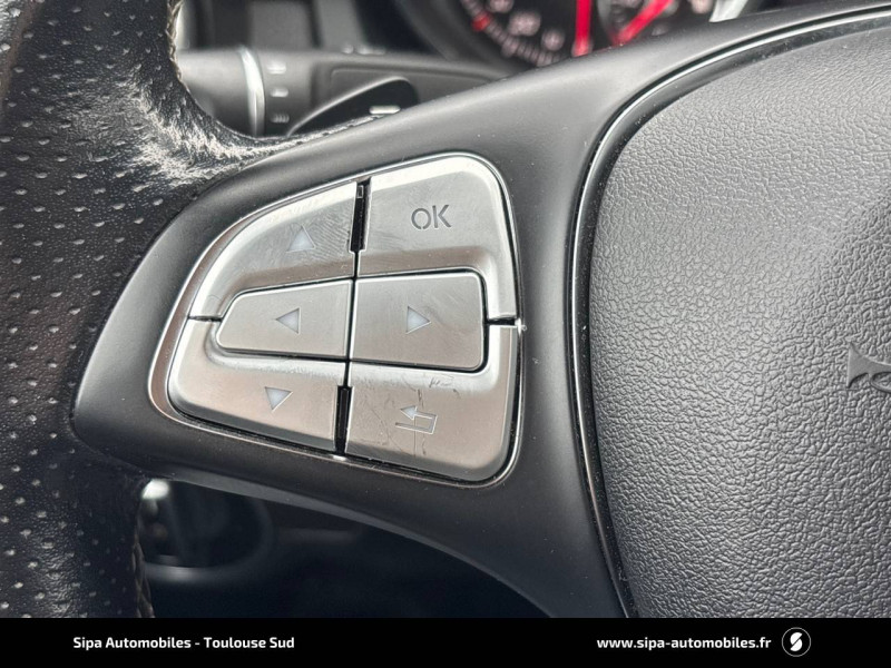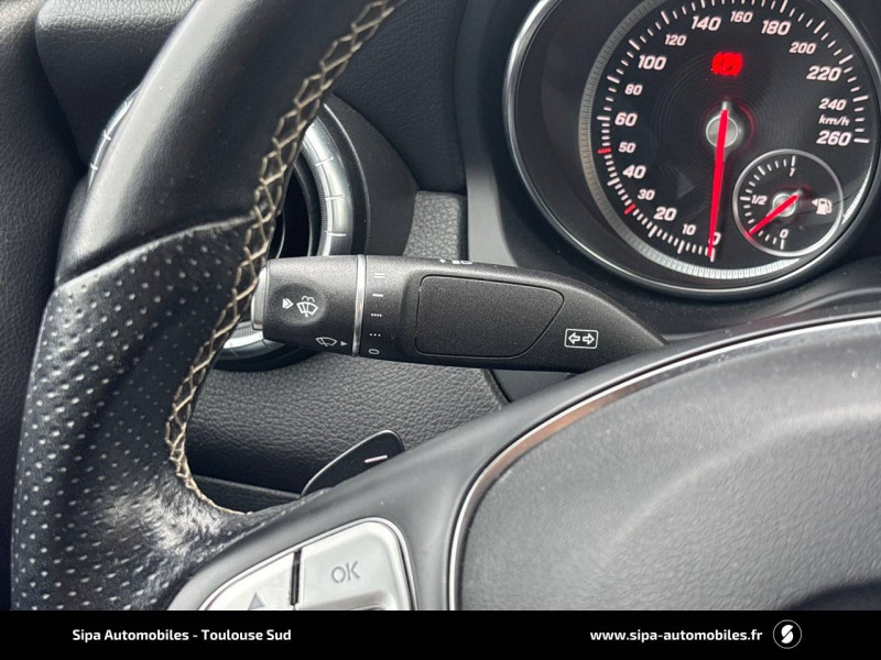 ABS (antiblocage de roues) et ASR (antipatinage) / Accoudoir central AV ajustable avec vide-poches / ADAPTATIVE BRAKE avec fonction HOLD et système d'aide au démarrage en côte / Airbags bassin intégrés aux sièges conducteur et passager AV / Airbags frontaux à plusieurs seuils de déclenchement pour conducteur et passager AV / ATTENTION ASSIST / Audio 20 CD avec pré-installation pour Garmin MAP PILOT / Baguettes de seuil éclairées / Boîte automatique à double embrayage 7 rapports 7G-DCT / Capot moteur actif / Ceintures de sécurité 3 points à toutes les places / Ciel de pavillon en tissu noir / Clé design chromée / Clignotants à commande confort par impulsions / Combiné d'instruments couleurs à 2 cadrans analogiques et visuel multifonctions / Conduite à gauche / Connexion Bluetooth pour téléphone portable et clavier numérique intégré / Détecteur d'occupation du siège passager AV / Déverrouillage du coffre depuis l'habitacle / Direction paramétrique / DYNAMIC SELECT / Eclairage de secours en cas d'accident / Fonction ECO stop/start / Freinage d'urgence assisté actif (BAS) / Frein de stationnement électrique / Garnitures intérieures en tissu/similicuir ARTICO Maringa noir avec surpiqûres bleues / Indicateur bouclage de ceintures / Indicateur de température extérieure / Indicateur dynamique de maintenance ASSYST PLUS / Inserts décoratifs style marin / Interface média USB dans l'accoudoir central AV / ISOFIX : fixations pour sièges enfants à l'AR (places extérieures) / Jantes alliage 18" design 5 doubles branches finition Dark Grey avec pneus 225/40 R18 / KEYLESS-START : bouton de démarrage sans clé / Kit anti-crevaison TIREFIT / Lève-vitres électriques (x4) à commande séquentielle et dispositif anti-pincement / Mercedes-Benz me Connect / Mode d'emploi en français / Module de communication LTE pour l'utilisation des services Mercedes connect me / Pack d'éclairage intérieur / Pack Garmin / Pack Rétroviseurs / Pack Urban / Pare-chocs peints couleur carrosserie / Pare-soleil avec miroir de courtoisie éclairé / Pneumatiques été / Projecteurs hautes performances à technologie LED / Régulateur de vitesse TEMPOMAT avec limiteur de vitesse / Rétroviseurs et poignées de porte peints dans le ton de la carrosserie / Rétroviseurs extérieurs électriques chauffants et asphériques, avec rappels de clignotants intégrés / Rétroviseurs extérieurs rabattables électriquement et rétroviseurs extérieur gauche et intérieur jour/nuit automatique / Sécurité enfants avec verrouillage manuel des portes AR et électrique des vitres AR / Suspension et train de roulement confort rabaissés / Système d'appel d'urgence Mercedes-Benz / Verrouillage centraliséà télécommande avec fonction verrouillage automatique désactivable / Volant avec palettes de changement de rapport / Volant multifonctions à 3 branches en cuir zones de préhension perforées et surpiqûres contrastées