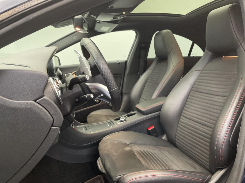 Connexion Bluetooth pour téléphone portable et clavier numérique intégré / Inserts décoratifs en aluminium clair à stries longitudinales / Interface média USB dans l'accoudoir central AV / ISOFIX : fixations pour sièges enfants à l'AR (places extérieures) / Jantes alliage AMG 18" design 5 doubles branches bicolores avec pneus 225/40 R18 / KEYLESS-START : bouton de démarrage sans clé / Kit anti-crevaison TIREFIT / Kit carrosserie AMG avec jupes AV et AR et habillage de bas de caisse spécifique / Lève-vitres électriques (x4) à commande séquentielle et dispositif anti-pincement / Levier de vitesse en cuir / Mercedes-Benz me Connect / Projecteurs hautes performances à technologie LED / Régulateur de vitesse TEMPOMAT avec limiteur de vitesse / Rétroviseurs extérieurs électriques chauffants et asphériques, avec rappels de clignotants intégrés / Rétroviseurs extérieurs rabattables électriquement et rétroviseurs extérieur gauche et intérieur jour/nuit automatique / Sécurité enfants avec verrouillage manuel des portes AR et électrique des vitres AR / Siège conducteur tout électrique avec fonction Mémoires / Siège passager AV électrique avec fonction Mémoires / Soutien lombaire à 4 réglages pour conducteur et passager AV / Tapis de sol velours AMG / Toit ouvrant panoramique électrique / Train de roulement sport / Verrouillage centraliséà télécommande avec fonction verrouillage automatique désactivable / Vitres latérales AR et lunette AR en verre teinté foncé / Volant sport multifonctions 3 branches en cuir avec zone de préhension perforée et méplat surpiqûres contrastées rouges / Pilote automatique de stationnement / Pack AMG Line / Pack d'éclairage intérieur / Pack Garmin / Pack Rétroviseurs / Pare-chocs peints couleur carrosserie / Partie centrale des contre-portes en microfibre DINAMICA / Pédalier Sport en acier inoxydable brossé avec picots en caoutchouc / Couvercle sur le vide-poches à l'AV / Détecteur d'occupation du siège passager AV / Déverrouillage du coffre depuis l'habitacle / Direction paramétrique / Direction paramétrique / Disques de freins AV perforés / DYNAMIC SELECT / Eclairage de secours en cas d'accident / Etriers de frein avec inscription Mercedes-Benz à l'AV / Fonction d'arrêt / redémarrage " Stop / Start ECO " avec commutateur de désactivation manuelle / Frein de stationnement électrique / Freinage d'urgence assisté actif (BAS) / Garnitures intérieures en microfibre DINAMICA/similicuir ARTICO avec surpiqûres contrastées rouges / Grand écran central 20,3 cm (8") / Grille de calandre diamant argent à une lamelle chromée avec insert noir brillant / Indicateur de température extérieure / Indicateur dynamique de maintenance ASSYST PLUS / Feux de stop adaptatifs / Insert dans la jupe arrière avec élément décoratif dans le ton noir brillant / ABS (antiblocage de roues) et ASR (antipatinage) / Accoudoir central AV ajustable avec vide-poches / Accoudoir de console centrale avec surpiqûres contrastées rouges / ADAPTATIVE BRAKE avec fonction HOLD et système d'aide au démarrage en côte / Airbags bassin intégrés aux sièges conducteur et passager AV / Airbags frontaux à plusieurs seuils de déclenchement pour conducteur et passager AV / Airbags latéraux et airbags rideaux / Assistant de feux de route / ATTENTION ASSIST / Audio 20 CD avec pré-installation pour Garmin MAP PILOT / Baguettes de ligne de ceinture en noir brillant / Baguettes de seuil éclairées / Baguettes de seuils chromées / Boîte automatique à double embrayage 7 rapports 7G-DCT / Buses d'aération avec cerclage et croix centrale chromés argentés / Capot moteur actif / Ceintures de sécurité 3 points à toutes les places / Ciel de pavillon en tissu noir / Ciel de pavillon noir / Clé design chromée / Clignotants à commande confort par impulsions / Combiné d'instruments couleurs à 2 cadrans analogiques et visuel multifonctions