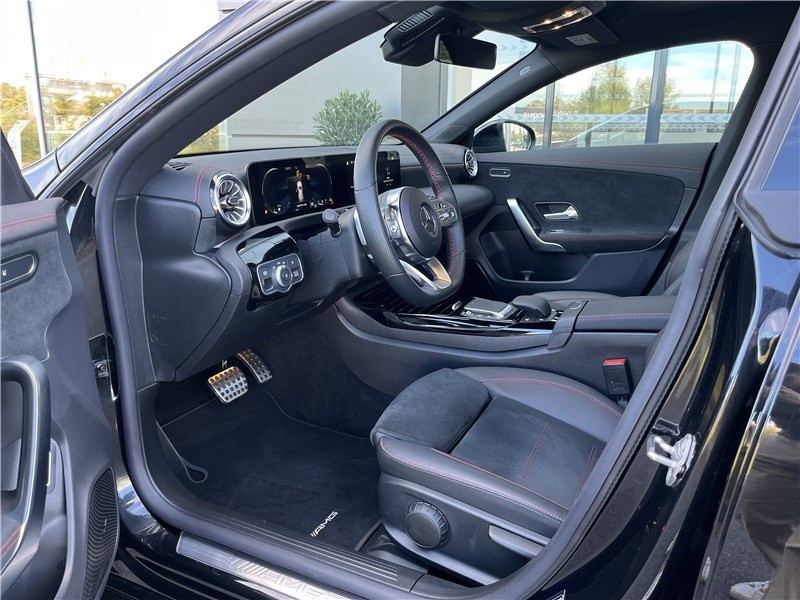 ADAPTIVE BRAKE avec fonction Hold, aide au démarrage en côte, pré-remplissage et séchage des freins par freinage en cas de pluie / Aide au parking active avec PARKTRONIC / Airbags latéraux pour le conducteur et le passager AV (airbags combinés thorax et bassin) / Assistant de stabilisation en cas de vent latéral / ATTENTION ASSIST: Système de détection de somnolence / Boîte de vitesse automatique Sport à 7 rapports AMG SPEEDSHIFT DCT / Connexion Bluetooth pour téléphone portable / DYNAMIC SELECT AMG avec 5 programmes de conduite : Chaussée glissante, Confort, Sport, Sport+ et Individual / Ecran média 10" / Fonction de démarrage sans clé KEYLESS-GO / Pack Advantage / Pack AMG Line / Pack Sport Black AMG / Pack Visibilité / Projecteurs LED hautes performances / Régulateur de vitesse TEMPOMAT avec limiteur de vitesse / Système d'échappement sport AMG avec gestion du volet d'échappement asservie au programme de conduite / Système multimédia MBUX avec menu AMG spécifique et 3 designs d?affichage : Classique, Sport et Supersport / Volant Performance AMG en Cuir Nappa