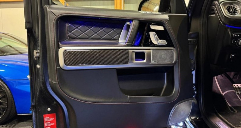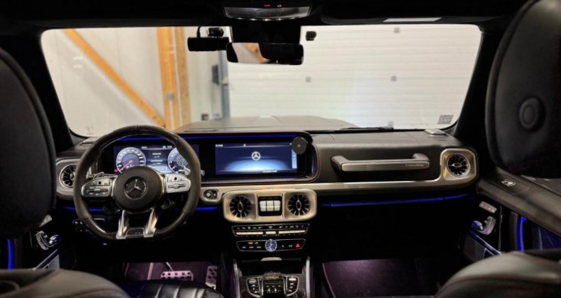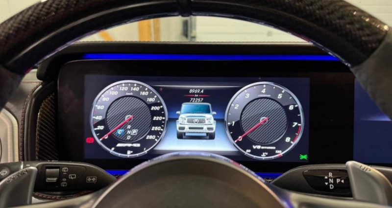 VÉHICULE AVEC TVA RÉCUPÉRABLE ! OPTIONS ET ÉQUIPEMENTS : Audio - Télécommunications : - Autoradio numérique (DAB) pour normes DAB, DMB et DAB+ - COMAND Online - Intégration Smartphone - Live Traffic Information - Système de divertissement AR - Système de sonorisation Surround Burmester - Apple Car Play / Android Auto Conduite : - Boîte de vitesses automatique 9 rapports SPEEDSHIFT TCT AMG - Essuie-glaces avec détecteur de pluie - Fonction d'arrêt/redémarrage Stop/Start ECO - Frein de stationnement électrique avec desserrage automatique au démarrage - Régulation du comportement dynamique (ESP) Extérieur : - Eclairage de proximité avec projection du logo de la marque - Grille de calandre spécifique AMG, chromée foncée - Projecteurs MULTIBEAM à LED - Protection du soubassement moteur Noir Obsidienne - Toit ouvrant électrique en verre - Vitres et lunette AR teintées foncées Intérieur : - Boîte à gants éclairée - Cache-bagages EASY PACK - Climatisation automatique THERMOTRONIC avec 3 zones - Direction paramétrique - Double porte-gobelets dans la console centrale - EXCLUSIVE Line intérieur - Eclairage d'ambiance 64 couleurs - Garnitures Cuir Nappa Noir - Inserts décoratifs en laque noire G Manufaktur - Pack Sièges multi-contours actifs Plus - Pack Sport Black AMG - Pack Technique - Partie haute du tableau de bord en cuir - Poches aumonières au dos des sièges AV - Prises 12 V dans l'espace de chargement, sur la console centrale AV et à l'AR - Rétroviseur intérieur sans cadre - Rétroviseurs intérieur jour/nuit automatiques - Sièges AR chauffants - Volant AMG Performance en carbone/microfibre DINAMICA Pack : - AMG RIDE CONTROL - ATTENTION ASSIST - Assistant de stationnement PARKTRONIC - Baguettes de seuil AMG en acier inoxydable, éclairées en blanc, avec monogramme AMG - Boîtiers de rétroviseurs noirs - Buses d'aération chromées - Ciel de pavillon en microfibre DINAMICA noir - Combiné d'instrument Widescreen - Commande confort ENERGIZING - Couvre-roue de secours en acier inoxydable (Cerclage) - Etoile Mercedes-Benz noire à l'AV et l'AR - Etriers de frein AMG peints en rouge à l'AV et à l'AR - Feux AR à LED - Feux stop adaptatifs - Filet de séparation de l'espace de chargement - Horloge analogique AMG spécifique, design IWC - Inserts décoratifs en carbone AMG - Marchepieds - Mise à jour cartographique pour 6 ans - Pack Sport Black AMG II - Pare-soleil en microfibre DINAMICA - Protection anti-encastrement du soubassement moteur - Pré-équipement pour fonction bureau embarquée - Pré-équipement pour les réglages du véhicule - Pré-équipement pour service de navigation - Pré-équipement pour système de divertissement AR - Régulateur de vitesse TEMPOMAT avec limiteur de vitesse variable - Réservoir de carburant de capacité accrue (100 l, réserve 12 l) - SUPERIOR Line intérieur - Set de tapis de sol en caoutchouc - Sièges AV chauffants et à réglages électriques pour le conducteur et le passager AV - Système d'échappement commutable AMG Performance - Tableau de bord en cuir Nappa - Tapis de sol AMG Avec inscription AMG - Tapis de sol en caoutchouc - Touches de volant AMG Sécurité : - Airbag genoux pour conducteur et passager AV - Airbags frontaux pour le conducteur et le passager AV - Airbags latéraux arrière à gauche et à droite - Airbags latéraux pour conducteur et passager AV (airbags combinés thorax et bassin) - Assistant de signalisation routière - Avertisseur de franchissement de ligne actif - COLLISION PREVENTION ASSIST - Contrôle de la pression des pneus - Contrôle électronique de motricité (4ETS) - Pack Protection antivol - Régulation anti-patinage ASR - Système PRE-SAFE Autres équipements et informations : - ABS (anti-blocage de roues), ASR (anti-patinage) - Adaptative Brake avec fonction Hold et aide au démarrage en côte - Baguette de protection extérieure avec application dans le ton noir avec monogramme AMG - Banquette AR rabattable 1/3-2/3 avec réglage de l'inclinaison des dossiers - Cerclage de roue de secours G Manufaktur peint dans le ton noir nocturne magno - Cerclage de roue de secours G Manufaktur peint dans le ton noir obsidienne - Colonne de direction à réglage électrique avec système EASY-ENTRY (réglage automatique du volant à la montée et à la descente) - DYNAMIC SELECT avec 5 programmes de conduite : Chaussée glissante, Confort, Sport, Sport+ et individual - Ecran offroad : représentation schématique de la Classe G sur l'écran du système multimédia permettant de visualiser des informations importantes pour la conduite en tout-terrain, telles que le dévers, l'état d'activation des blocages de différentiel et le braquage de roue - Fixations pour sièges enfants i-Size aux places AR extérieures - Fonction Mémoires pour les sièges et les appuie-tête AV - Fonction de démarrage KEYLESS-GO - Freinage d'urgence assisté actif avec alerte anticollision, assistance au freinage et fonction de Cylindrée : 8 cm3 NB. Places : 5 Roues Motrices : 4 Controle Technique : OK