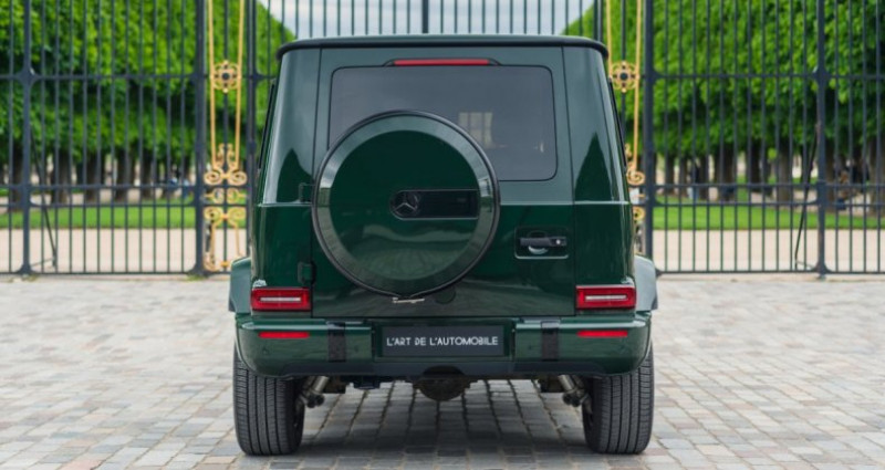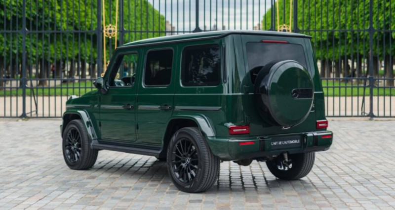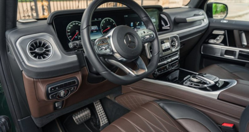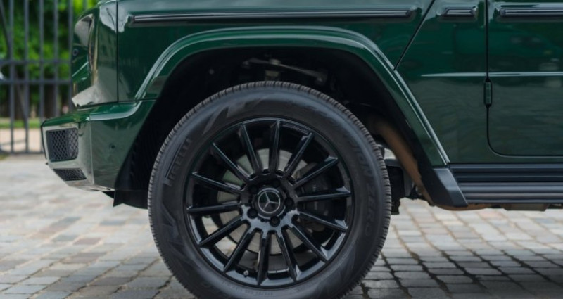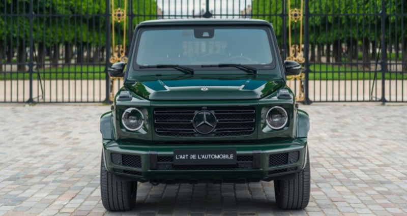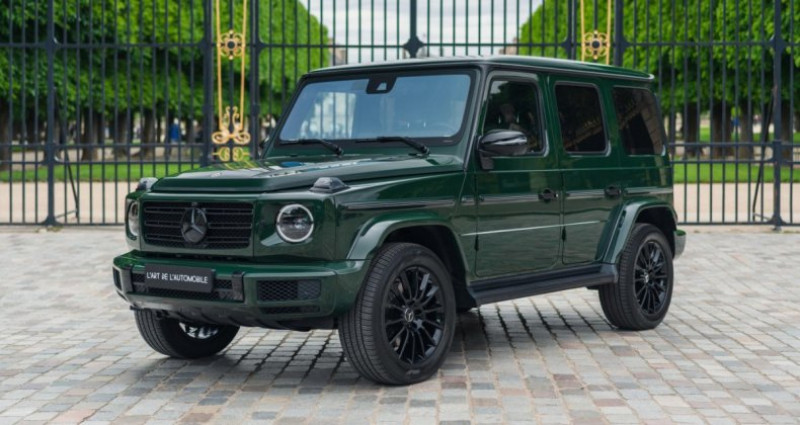 OPTIONS ============== P55 Pack Nuit P31 Pack AMG Y16 Extincteur K81 Réservoir 100L JP0 Système Pre-Safe PT1 Pack Technologie F49 Pare-brise chauffant S81 Pack Design Diamant L57 Phares Multibeam LED P77 Intérieur Ligne Superior EA2 Avertisseur d'angle mort HA1 Ionisation de l'air intérieur JC1 Tableau de bord en cuir Nappa K69 Système d'échappement sport P72 Commande Confort Energizing RR8 Roue de secours sur la porte arrière PK2 Pack Sièges Multicontours Actifs Plus 825 Peinture Vert Foncé uni G Manufaktur PA8 Pack Stationnement avec caméra 360° Q55 Attelage avec stabilisation de remorque P82 Protection du véhicule GUARD 360° Plus EZ9 Régulateur de vitesse adaptatif Distronic L5B Volant sport multifonctions en cuir Nappa RJ5 Jantes alliage léger multibranches AMG 20 V36 Poignées de maintien en cuir G Manufaktur FH5 Ciel de pavillon en microfibre Dinamica noir V43 Tapis de sol AMG avec coutures contrastantes 954 Intérieur cuir Nappa bicolore Brun Espresso/noir BS4 Étriers de frein avec inscription « Mercedes-Benz » ZT9 Inserts décoratifs avec inscription « G Manufaktur » S54 Fonction mémoire pour les sièges et les appuis-tête avant RB4 Cerclage du couvre-roue de secours G Manufaktur peint en Noir Obsidienne INFORMATIONS ============== Etat neuf TVA récupérable Deuxième main belge Configuration exceptionnelle Le dernier G500 équipé d'un V8 Révisé le 16/05/2025 à 17 856 kms par Mercedes-Benz SAGA à Waterloo Prévoir 26 800 € supplémentaires de malus écologique pour une immatriculation en FranceNous vous proposons un Mercedes G500 dans une exceptionnelle peinture Vert Foncé uni G Manufaktur associée à un intérieur en cuir Nappa bi-ton Brun Espresso et Noir. Dans un état neuf, ce G500 est une deuxième main belge qui a parcouru seulement 19 000 kms et l'auto a été révisée l'an dernier, il y a moins de 1 500 kms. La voiture était recouverte d'un film de protection mat depuis sa livraison jusqu'à son arrivée dans notre garage, elle se trouve donc dans un état irréprochable. Ce 4x4 bénéficie par ailleurs de la TVA récupérable.Bien entendu, ce Classe G bénéficie également de l'équipement standard impressionnant comprenant entre autres la Sono Burmester, le toit ouvrant, les aides à la conduite et au stationnement. Il dispose en plus de nombreuses options G Manufaktur et de la finition intérieure Superior Line qui inclut les sièges multicontours actifs Plus, avec motifs en losanges. Si vous souhaitez immatriculer cette auto en France, il faudra prévoir 26 800 € supplémentaires correspondant au malus écologique.Après 38 ans de carrière, Mercedes décide de revoir de fond en comble son Classe G. Ainsi, ce dernier adopte un style quasiment identique à l'ancien mais, sous cette carapace quasi inchangée, l'évolution technique est en revanche bien réelle. Bien que ce rutilant Classe G repose toujours sur un châssis échelle, ce dernier est nouveau et associé à un train avant avec suspension à double triangulation. Et si l'on retrouve toujours un essieu rigide à l'arrière, celui-ci est également inédit.L'ensemble des modifications techniques ont été faites dans le but d'améliorer le confort et la polyvalence du véhicule et ainsi de le rendre nettement moins rustique que son apparence ne le laisse supposer. Côté performance, le V8 4.0L du G500 développe 422 chevaux, lui permettant un 0 à 100 km/h en 5,9 secondes. L'auto dispose de toute la technologie actuelle à l'intérieur, et se révèle des plus utilisables au quotidien. C'est aussi le dernier G500 à bénéficier du fabuleux V8 !INFORMATIONS IN ENGLISHRecoverable VAT Like new condition Belgian second hand Exceptional configuration The last G500 equipped with a V8 Serviced on 05/16/2025 at 17,856 km by Mercedes-Benz SAGA in Waterloo Plan for an additional €26,800 ecological penalty in case of registration in FranceWe offer a Mercedes G500 in an exceptional Dark Green G Manufaktur paint paired with a two-tone Espresso Brown and Black Nappa leather interior. In like-new condition, this G500 is a second-hand Belgian vehicle that has covered only 19,000 km, and the car was serviced last year less than 1,500 km ago. The vehicle was covered with a matte paint protection film since delivery until its arrival at our garage, and is therefore in impeccable condition. This 4x4 also benefits from recoverable VAT.Of course, this G-Class also benefits from an impressive standard equipment package including, among other things, the Burmester sound system, sunroof, driving and parking assistance systems. It also features numerous G Manufaktur options and the Superior Line interior finish, which includes active multicontour Plus seats with diamond-pattern stitching. If you wish to register this car in France, you will need to budget an additional €26,800 corresponding to the ecological penalty.After 38 years of career, Mercedes has decided to completely overhaul its G-Class. Thus, the latter adopts a style almost identical to the old one, but under this almost unchanged shell, the technical evolution is, on the other hand, very real. Although this gleaming G-Class still rests on a ladder chassis, the latter is new and associated with a front axle with double wishbone suspension. And if we still find a rigid axle at the rear, this one is also new.All the technical modifications have been made with the aim of improving the comfort and versatility of the vehicle and thus making it much less rustic than its appearance suggests. In terms of performance, the G500's 4.0L V8 engine produces 422 horsepower, allowing it to accelerate from 0 to 60 mph in 5.9 seconds. The car has all the current technology inside, and proves to be very usable on a daily basis. C'est aussi le dernier G500 à bénéficier du fabuleux V8 !
