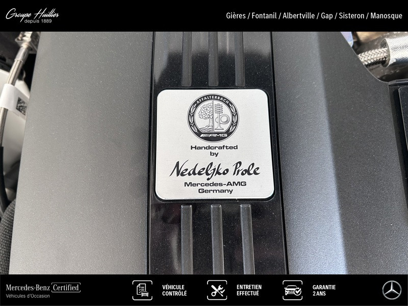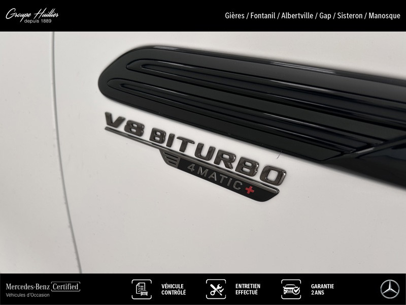 AMG 63 4MATIC+, essence, blanc, 27/06/2025, Alarme antivol et anti-effraction, Volant à gauche, DIGITAL LIGHT, Ciel de pavillon MANUFAKTUR en microfibre DINAMICA noir, Séparation automatique du coffre restant, Eclairage d ambiance, Détecteur de panneaux de signalisation, Capote en tissu rouge, Train de roulement AMG RIDE CONTROL ACTIVE, Pack USB Plus, Assistant de changement de voie actif, Pack Sport Black AMG, Grille de radiateur noire, Pré-équipement pour Live Traffic Information, Jantes forgées AMG 53 cm (21 ) à 10 doubles branches finition noir mat et rebord naturel brillant, Système de contrôle de la pression des pneumatiques, Etriers de frein AMG peints en jaune, Radio digitale, Désactivation automatique de l airbag passager avant, Pack Mémoires, Système multimedia MBUX, AIRSCARF, Identification no. (US-VIN), Fonctions MBUX étendues, Pré-équipement pour fonction projection d animations, Assistant intérieur MBUX, Notice d utilisation en Français, Accès au streaming musical via système multimédia, Filtre à particules essence, Projecteur de logo AMG, Services à distance Premium, TIREFIT, FR2N, Housse d intérieur AMG, Aide au Parking Actif, Capot moteur actif, DISTRONIC PLUS avec Cross-Traffic Assist (DTR+Q), Double pare-soleil rabattable et pivotant latéralement, Intégration smartphone, Pneus été, Protection volumétrique, Pack d assistance à la conduite, Climatisation automatique THERMOTRONIC, Support de man?uvre, Combiné d instrument de 12,3, Adaptation de la vitesse basée sur un itinéraire, Fermeture assistée du coffre, Fonction de démarrage sans clé KEYLESS GO, Navigation par disque dur, Affichage tête haute, Pré-équipement pour services de navigation, Inserts décoratifs AMG en carbone, Fonction projection de lignes, Sonorité performance AMG, Norme d émissions EU6, Android Auto, Touches AMG Drive Unit sur le volant, Prééquipement pour service de partage de clé, Volant chauffant multifonctions, Apple CarPlay, Assistant de feux de route Plus, Sièges avant climatisés (chauffants et ventilés), Essieu avant relevable jusqu à 30 mm, Rétroviseurs intérieur et extérieur (côté conducteur) à commutation jour/nuit automatique, Baguettes de seuil éclairées avec monogramme « AMG » et cache interchangeable, Système de sonorisation Surround Burmester®, Gilet de sécurité fluorescent pour le conducteur, Protection transport, Sièges multicontours à l'avant, Pack Compartiment de chargement, Porte-gobelets, Pré-équipement pour fonction projection de symboles, Volant Performance AMG en cuir Nappa/microfibre MICROCUT, LEDER / NAPPA / SEMIANILIN, Système de recharge sans fil pour smartphone, Navigation MBUX Premium, Boîte de vitesses à 9 rapports SPEEDSHIFT MCT AMG, Système de freinage composite haute performance AMG, Pré-équipement pour radio digitale, Phares et feux arrière teintés, Pack ENERGIZING Plus, Grand écran central de 11,9, Pack DYNAMIC PLUS AMG, Système de récupération de la chaleur résiduelle du moteur, Roues arrière directrices, Système PRE-SAFE®, Pack Sport Black II AMG, Avertisseur de franchissement de ligne actif, Prise 12V dans le coffre, Protection du véhicule Plus GUARD 360°, Capteurs arrière pour assistant de sortie de voie, Système d appel d urgence, HANDS-FREE ACCESS, Redémarrage automatique étendu, Pack Mémoires, Personnalisation sonore, Assistant de régulation de distance DISTRONIC actif, KEYLESS-GO avec poignées de porte affleurantes, Airbags latéraux à l'arrière, Module de communication (LTE) pour l'utilisation des services connectés, Badges AMG sur le couvercle de coffre et les ailes en finition noir brillant, MAGIC VISION CONTROL avec balais d'essuie-glace chauffants, Scanner à empreinte digitale, Pack stationnement, Caméras panoramiques 360°, Réalité augmentée pour le système multimédia MBUX, Pack Premium Plus, Pack Rétroviseurs, Assistant de limitation de vitesse actif, Affichage de l'état des ceintures arrière sur le combiné d'instruments, Différentiel électronique autobloquant AMG sur l'essieu arrière, Adaptateur USB, Rétroviseurs extérieurs rabattables et déployables électriquement