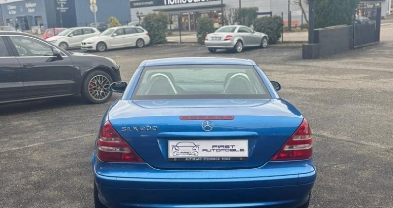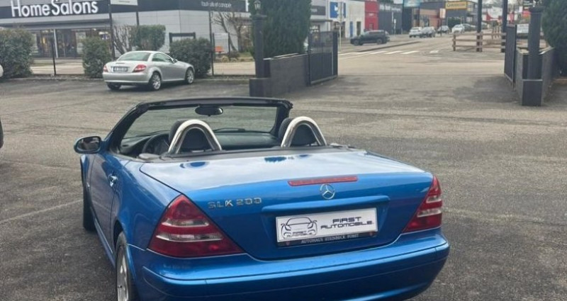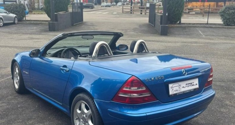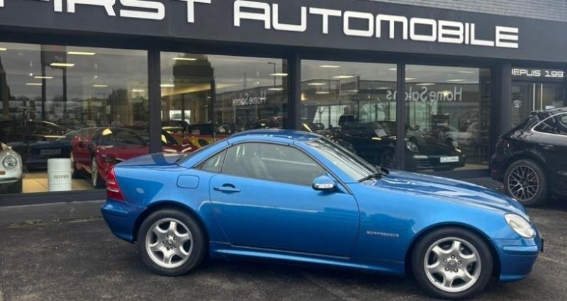 EQUIPEMENTS ================== - Mercedes SLK 200 Kompressor (R170) - de 2002 - Très faible kilométrage seulement 52 000 km d?origine - Magnifique association de couleur Bleu Lazulite avec un intérieur Cuir Noir et Anthracite - Entretien à jour. Un roadster iconique - fiable et de plus en plus recherché - dans une configuration élégante et intemporelle Association chic et sportive - parfaitement adaptée à l?esprit roadster. Antibrouillard - Jantes alu Mercedes Benz 16 poli - Régulateur et limiteur de vitesse - Porte gobelets - Sièges chauffants - Climatisation - Autoradio avec lecteur CD + Prise USB - Arceau et levier de frein à main chromé - Volant en cuir - Lave-glace chauffant - Hard Top escamotable électrique - Console centrale en brillant noir - vitre électrique - rétroviseuir électrique - verrouillage centralisé avec commande infrarouge Boite Manuelle 6 rapports. CG en sus. * Nous apportons un maximum de soin à la saisie de nos fiches véhicules - toutefois des erreurs de descriptif des options sont possibles.
