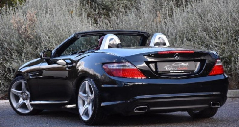 Mercedes SLK 350 AMG - V6 306 ch - Pack AMG - Très Haut Niveau d'Équipement Nous vous proposons cette superbe Mercedes SLK 350 AMG, un roadster sportif et raffiné animé par son moteur V6 3.5L de 306 ch associé à la boîte 7G-Tronic Plus. Un véhicule coup de cœur : luxe, performance et sensations à ciel ouvert grâce à son toit escamotable électrique. ? Une configuration ultra complète, rare avec autant d’options : AIRSCARF, Distronic Plus, Harman Kardon, Pack Roadster, Pack AMG, cuir Nappa réfléchissant, ILS… ? Points forts Véhicule professionnel Sort de révision Contrôle technique OK CarVertical vierge Garantie 6 mois incluse Aucun frais à prévoir ?? LISTING COMPLET DES OPTIONS ET ÉQUIPEMENTS OPTIONS PREMIUM AIRSCARF : chauffage de nuque intégré aux sièges (500 €) DISTRONIC PLUS : régulateur de vitesse et de distance avec frein PRE-SAFE et BAS PLUS (1 850 €) Cuir Nappa réfléchissant (1 900 €) Horloge analogique au centre de la planche de bord (280 €) ILS (Intelligent Light System) : projecteurs bi-xénon adaptatifs (1 100 €) Jantes AMG 18’’ 5 branches 225/40 R18 AV - 245/35 R18 AR (1 450 €) KEYLESS-GO : démarrage sans clé (900 €) Lave-glace chauffant (200 €) Lave-phares (300 €) Pack Roadster (3 400 €) Pack Roadster + cuir Nappa réfléchissant (3 800 €) Pack Sport AMG (2 900 €) Palettes au volant (300 €) Peinture métallisée (800 €) Sièges chauffants (400 €) Système audio Harman Kardon LOGIC 7 (850 €) CONFORT & DESIGN Sellerie cuir Nappa Toit escamotable électrohydraulique couleur carrosserie Filet pare-vent en tissu Accoudoir central + rangements Climatisation Ciel de pavillon noir Inserts aluminium brossé Volant sport 3 branches cuir Nappa (bas plat) Levier de vitesses cuir Nappa Pédalier sport inox Baguettes de seuil « Mercedes-Benz » Poches aumônières Porte-gobelets TECHNOLOGIES & AIDES À LA CONDUITE Boîte automatique 7G-TRONIC PLUS ADAPTIVE BRAKE + aide au démarrage en côte TEMPOMAT : régulateur de vitesse SPEEDTRONIC : limiteur Attention Assist (détection somnolence) Avertisseur de pression des pneus Bluetooth + USB + Aux Autoradio Audio 20 CD + écran couleur 5,8’’ Combiné à cadrans argentés Capteur de pluie Allumage automatique des projecteurs Pack éclairage intérieur Indicateur de maintenance ASSYST SÉCURITÉ ABS + BAS ESP + ASR Airbags frontaux, latéraux, tête Capot moteur actif (protection piétons) Détection siège enfant Détection occupation siège passager Feux arrière LED Feux stop adaptatifs clignotants Frein de parking électrique Roue de secours galette ASPECTS EXTÉRIEURS Projecteurs halogènes (base) Projecteurs bi-xénon ILS (option) Double sortie d’échappement chromée Grille de calandre chromée Sorties d’air latérales chromées Jantes alliage 17’’ 10 branches Rétroviseurs électriques, chauffants, asphériques Clignotants intégrés aux rétroviseurs ? Entretien Dernière révision effectuée Contrôle technique OK Aucun frais à prévoir Garantie 6 mois incluse ? Nos services Reprise possible Financement disponible Essai sur rendez-vous - 765 avenue Saint-Martin - 06250 Mougins ? Contactez-nous pour plus d’informations ou pour réserver un essai