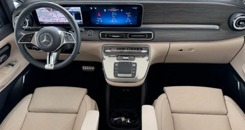 Mercedes-Benz V300d 4MATIC XL, finition AMG et pack Luxe complet. Véhicule exceptionnellement équipé, offrant un confort premium, une technologie de pointe et un espace intérieur haut de gamme. Idéal pour les déplacements professionnels, le transport VIP ou les voyages en famille dans un cadre prestigieux. Sièges de luxe en 1re rangée avec fonction massage, sellerie cuir Nappa beige, éclairage d’ambiance multicolore, cockpit Widescreen MBUX avec écran large, système multimédia haut de gamme Burmester Surround et intégration smartphone complète. Doté de la suspension pneumatique AIRMATIC, du système Distronic (régulateur de distance actif), de l’assistant de maintien de voie, de l’assistant d’angle mort, de la caméra 360° avec vision panoramique et du système de parking automatique, le véhicule offre une aide à la conduite de de ière génération. Confort maximal à bord grâce au toit relevable électrique Marco Polo, à la climatisation automatique multi-zones, au chauffage additionnel électrique, aux sièges chauffants avant/arrière et à l’intérieur Marco Polo entièrement aménagé avec éclairage LED, rangements et finitions premium. Le véhicule comprend également?: jantes AMG, vitrage teinté, système Keyless, hayon arrière Easy-Pack, feux LED Multibeam, vitres électriques, rétroviseurs extérieurs électriques et rabattables, recharge USB, système anti-fatigue, reconnaissance des panneaux et fonctions de sécurité avancées Mercedes-Benz.