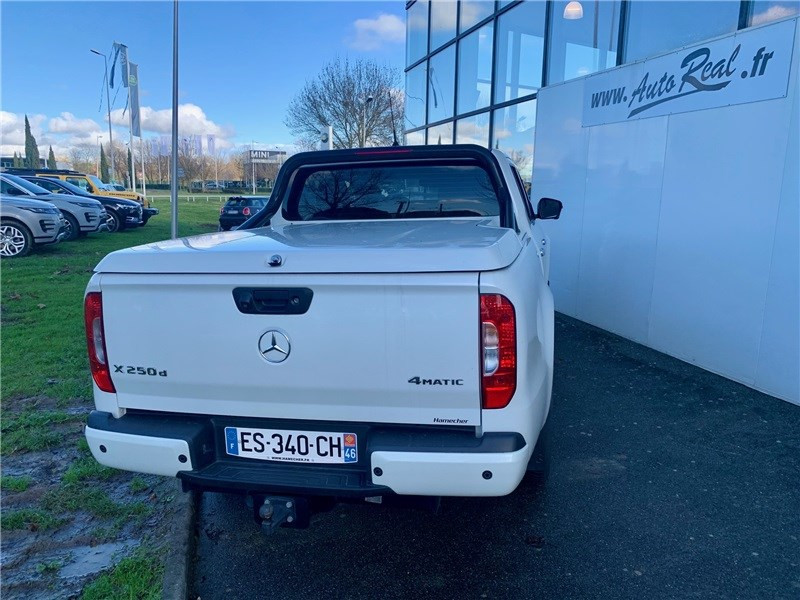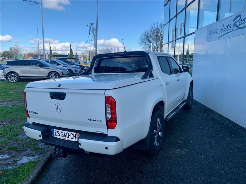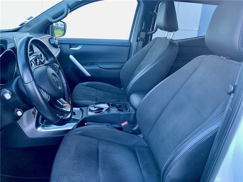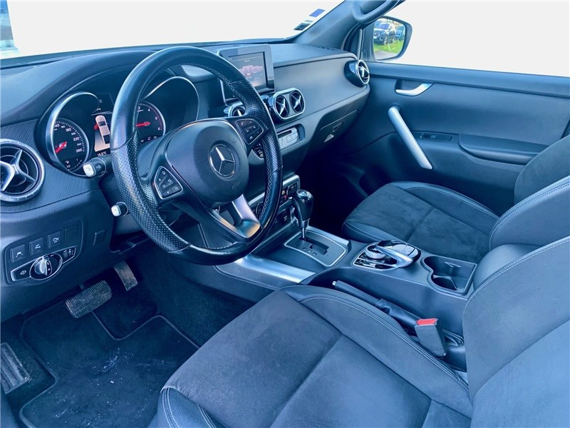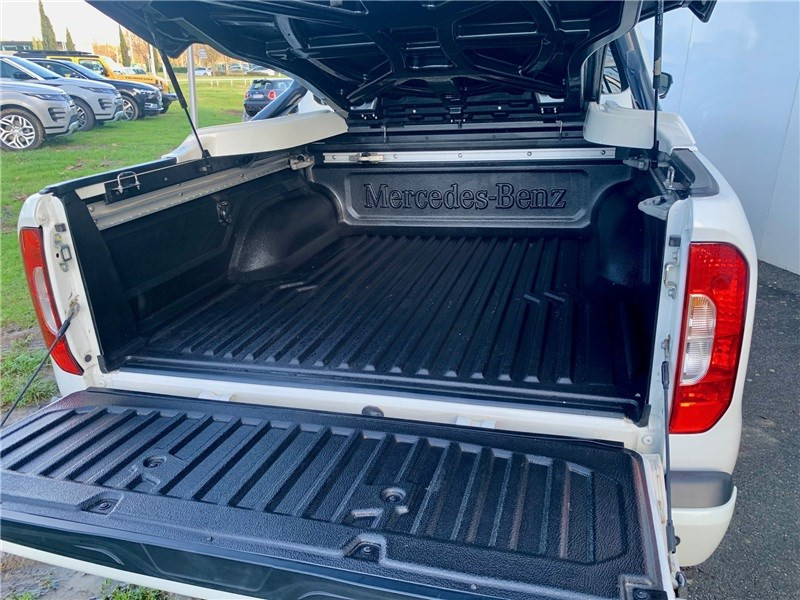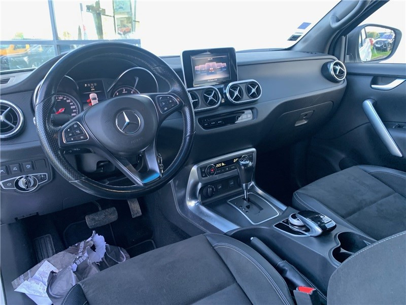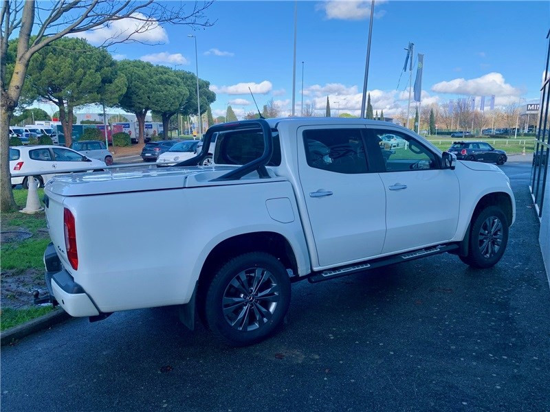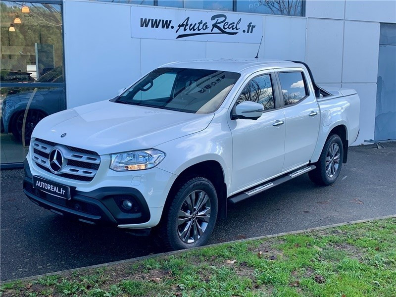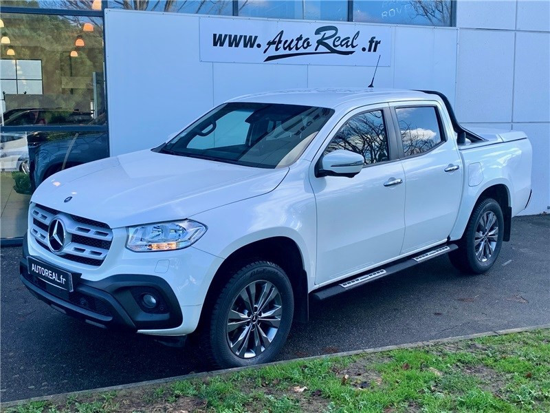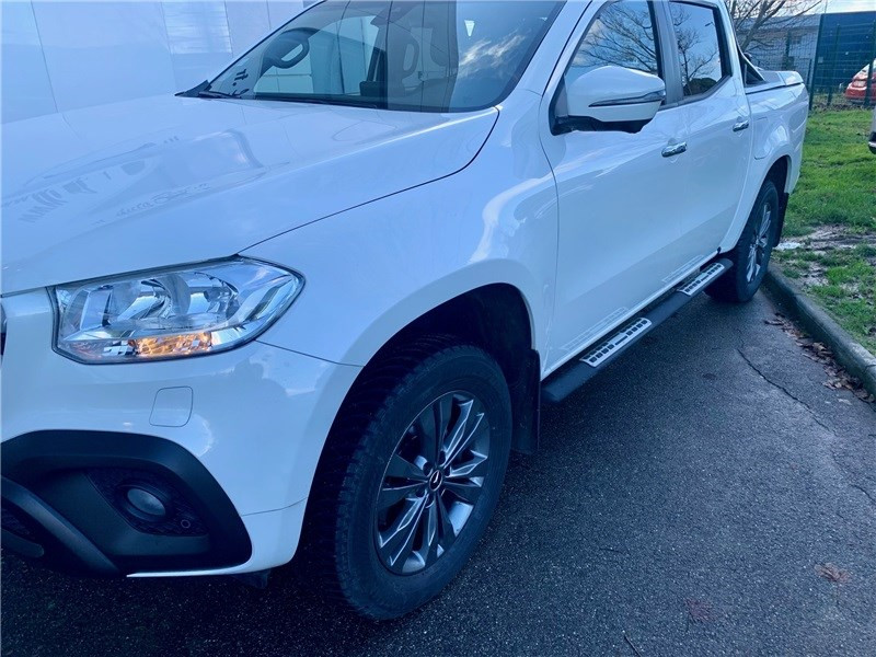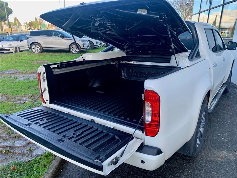 Affichage de la pression des pneumatiques / Audio 20 USB / Baguettes de seuil façon aluminium / BAS / Blindage du soubassement / Boîte à gants verrouillable / Boîte de vitesse automatique 7 rapports / Bouches de ventilation noires brillantes / Capacité benne jusqu?à 1,1 tonnes / Capacité de remorquage jusqu?à 3,5 tonnes / Châssis en H / Ciel de pavillon beige macchiato / Climatiseur manuel / Cric / Crochet dépannage AR / Double cabine / Essieux solides / Fixation des sièges enfants i-Size / Freinage d'urgence assisté actif / HP 2 voies à l'AV et à l'AR / Lampe(s) d'éclairage intérieur à l'AR / Levier de frein à main en cuir / Module communication services Mercedes Me Connect / Module de pavillon confort / Monte pneumatique 255/65 R17 / Oeillets d'arrimage / Pack Style Progressive / Pare-chocs finition grenue noir AV / Pare-chocs noir AR / Peinture Blanc Chisana / Planche de bord en finition grenue noire / Pneumatiques été / Protection accrue AV et AR / Réglages du véhicule / Rétroviseur intérieur jour/nuit automatique / Revêtement de sol en matière synthétique / Système d'appel d'urgence Mercedes-Benz / Système de freinage avec ABS, ASR / Tempomat / Tissu Tunja noir / Train de roulement confort
