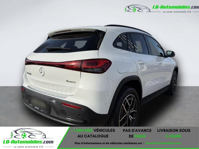 Référence : 992870 Vos Avantages chez LB-AUTOMOBILES.com / Prix affiché TTC Livré hors carte grise / Livraison sous 10 jours dans toute la France hors 31 / Pas d?avance de frais paiement du véhicule 100% à la livraison par virement. Mercedes EQA Neuf remisée, Mercedes EQA Occasion Toulouse Beaupuy 31850, Mercedes EQA Véhicule sorti de réseau collaborateur, Mercedes EQA import, Mercedes EQA importateur, Mercedes EQA Livraison possible dans toute la France sous 5 jours, Mercedes EQA, Mercedes EQA Location Option Achat, Mercedes EQA LLD, Mercedes EQA Longue Durée, Mercedes EQA TVA récupérable. Possibilité d'extension de garantie 12, 24,36 mois, Pour tout autres voitures import neufs ou occasions collaborateur fortement remisée, Mandataire Audi, Mandataire BMW, Mandataire Volkswagen, Mandataire Mercedes, Mandataire Peugeot Espagne, Mandataire Renault Espagne, Porsche import, Mandataire Citroën Espagne, Mandataire Seat Espagne, n'hésitez pas à nous contacter. « Sous réserve de vente préalable et erreur de saisie » Principaux équipements : - 4x4 - ABS - Accoudoir - Airbags frontaux et latéraux et autres - Alerte de franchissement involontaire de ligne - Android Auto - Antidémarrage - Apple CarPlay - Assistance au freinage d'urgence - Assistance de démarrage en côte - Assistant feux de route - Bluetooth - Boîte de vitesses robotisée - Capteur de lumière - Capteur de pluie - Carnet d'entretien - Climatisation automatique - Cockpit numérique - Commande vocale - Contrôle de la pression des pneus - Direction assistée - Éclairage d'ambiance - Écran tactile - ESP - Fermeture centralisée - Feux de jour LED - Galerie de toit - Garantie - GPS - Grille de protection pour coffre - Hayon électrique - Isofix - Jantes alliage - Kit de préparation pour système de navigation - Kit de réparation d'urgence des pneus - Kit mains libres - Ordinateur de bord - Phares LED - Pneus été - Port USB - Radio DAB - Régulateur de vitesse - Rétroviseur extérieur électrique - Rétroviseur intérieur anti-éblouissement automatique - Sièges chauffants - Streaming musical intégré - Support lombaire - Système antipatinage - Système d'appel d'urgence - Système d'assistance aux angles morts - Système d'avertissement de la distance - Système de détection de la fatigue - Système de limitation de la vitesse - Système de reconnaissance des panneaux de signalisation - Tuner/radio - Véhicule non-fumeur - Vitres électriques - Volant en cuir - Volant multifonction - WLAN / point d'accès Wi-Fi - Radar de recul : Avant, Appareil photo, Arrière - Première main : Oui
