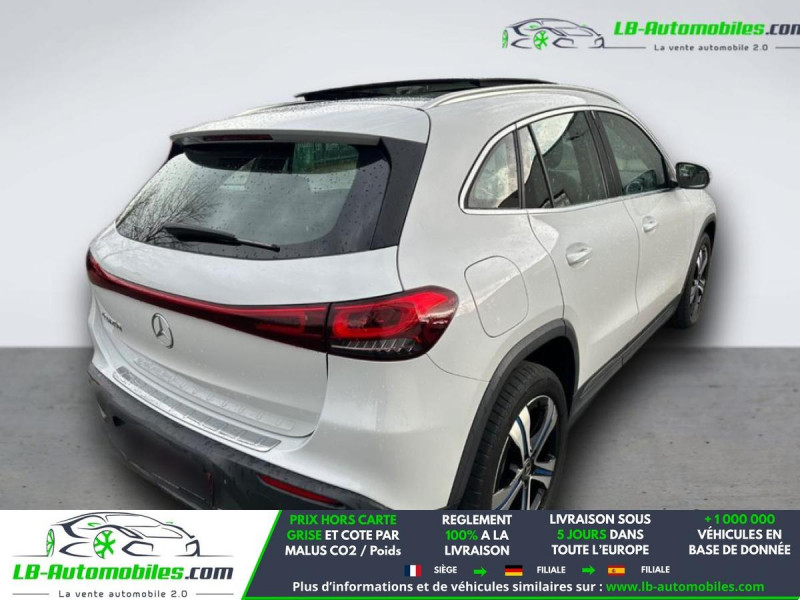 Référence : 1165924 Vos Avantages chez LB-AUTOMOBILES.com / Prix affiché TTC Livré hors carte grise / Livraison sous 10 jours dans toute la France hors 31 / Pas d?avance de frais paiement du véhicule 100% à la livraison par virement. Mercedes EQA Neuf remisée, Mercedes EQA Occasion Toulouse Beaupuy 31850, Mercedes EQA Véhicule sorti de réseau collaborateur, Mercedes EQA import, Mercedes EQA importateur, Mercedes EQA Livraison possible dans toute la France sous 5 jours, Mercedes EQA, Mercedes EQA Location Option Achat, Mercedes EQA LLD, Mercedes EQA Longue Durée, Mercedes EQA TVA récupérable. Possibilité d'extension de garantie 12, 24,36 mois, Pour tout autres voitures import neufs ou occasions collaborateur fortement remisée, Mandataire Audi, Mandataire BMW, Mandataire Volkswagen, Mandataire Mercedes, Mandataire Peugeot Espagne, Mandataire Renault Espagne, Porsche import, Mandataire Citroën Espagne, Mandataire Seat Espagne, n'hésitez pas à nous contacter. « Sous réserve de vente préalable et erreur de saisie » Principaux équipements : - ABS - Accoudoir - Antidémarrage - Assistance de démarrage en côte - Assistant feux de route - Attache remorque pivotante - Avertisseur de franchissement de ligne - Bluetooth - Capteur de lumière - Capteur de pluie - Carnet d'entretien - Cockpit numérique - Commande vocale - Contrôle de la pression des pneus - Direction assistée - Éclairage d'ambiance - Écran tactile - ESP - Fermeture centralisée - Feux de jour LED - GPS - Hayon électrique - Isofix - Jantes alliage - Kit de réparation d'urgence des pneus - Kit mains libres - Ordinateur de bord - Phares LED - Pompe à chaleur - Port USB - Radio DAB - Réglage électrique des sièges - Régulateur de vitesse - Rétroviseur extérieur électrique - Rétroviseur intérieur anti-éblouissement automatique - Rétroviseurs extérieurs rabattables électriquement - Sièges chauffants - Support lombaire - Système antipatinage - Système d'appel d'urgence - Système d'avertissement de la distance - Système de limitation de la vitesse - Système de reconnaissance des panneaux de signalisation - Toit panoramique - Traction avant - Vitres électriques - Volant en cuir - Volant multifonction - WLAN / point d'accès Wi-Fi