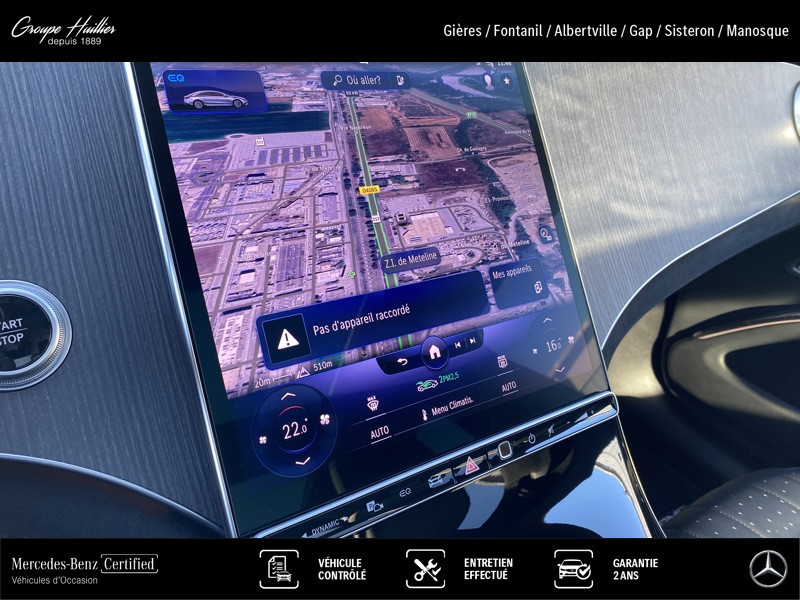Berline 450+ AMG Line 333ch, électrique, noir, 27/12/2022, Siège avant droit à réglage électrique avec fonction mémoire, Avertisseur de franchissement de ligne actif, KEYLESS-GO, Navigation par disque dur, Sièges avant climatisés (chauffants et ventilés), Suspension AIRMATIC, Désactivation automatique de l airbag passager avant, Filtre à air pour système de climatisation, Notice d utilisation en Français, Console centrale finition noir brillant, Préinstallation pour Live Traffic Information, Avertisseur sonore pour les piétons, Pack Protection antivol URBAN GUARD Plus, Volant à gauche, Siège avant gauche à réglage électrique avec fonction mémoire, Câble de charge pour boîtier mural et borne de recharge publique, 5m, droit, jusqu à 22 kW / 32 A, Prise de charge, Rangements sous la console centrale, FR2N, Système d'appel d'urgence Mercedes-Benz, Ciel de pavillon en tissu noir, Aide au stationnement active, Affichage de l'état des ceintures arrière sur le combiné d'instruments, Assistant de feux de route Plus, Système multimedia MBUX, Réalité augmentée pour le système multimédia MBUX, TIREFIT, Assistant intérieur MBUX, DYNAMIC SELECT, Pack Premium Plus, Capteurs arrière, AMG Line intérieur et extérieur, Module de communication (LTE Advanced) pour l'utilisation des services Mercedes me connect, Baguettes de seuil éclairées avec monogramme « Mercedes-Benz », DISTRONIC PLUS avec Cross-Traffic Assist (DTR+Q), Prééquipement pour services de navigation étendus, Calandre à design étoilé Mercedes-Benz, Pack Confort acoustique, Assistant de limitation de vitesse actif, Pack Confort KEYLESS-GO, Assistant de stationnement avec fonction mémoire, Prééquipement pour les services à distance et de navigation, Pack d affichage (12,3 + 12,8 ), Câble de charge pour prise secteur, 5m, droit, Chargeur en courant alternatif (AC), 11 kW, Pack d assistance à la conduite Plus, Pack Mémoires, Alarme antivol et anti-effraction, Intégration smartphone, Palettes de changement de vitesse galvanisées au volant, Sièges multicontours à l'avant, Cache-bagages EASY-PACK, Pack d'éclairage intérieur, Détecteur de panneaux de signalisation, Lave-glace chauffant, Accès au streaming musical via système multimédia, Services à distance Premium, Fonctionnalités élargies MBUX, Rétroviseurs intérieur et extérieur (côté conducteur) à commutation jour/nuit automatique, HANDS-FREE ACCESS, Vitrage teinté et insonorisant en verre feuilleté réfléchissant les infrarouges, Contrôle de la pression des pneus, Pilote automatique de régulation de distance actif DISTRONIC, Hayon EASY-PACK, Eclairage d ambiance, Inserts décoratifs en tilleul anthracite à pores ouverts à fines lignes, Kit carrosserie AMG, leather, Toit ouvrant panoramique, Système de sonorisation Surround Burmester®, Téléphonie mulitfonctions, Pack d équipements standard Europe, Tapis de sol AMG, Radio digitale, Eclairage d'ambiance, Support de man?uvre, Fonction de projection de symboles, Pack Pilote automatique de stationnement à distance, Fonction de projection de lignes, DIGITAL LIGHT, Prééquipement pour radio digitale, Navigation MBUX Premium, AMG Line Intérieur, Porte-gobelets, Chargeur en courant continu (DC) 200 kW, Services de charge étendus et services à distance Premium, Extérieur AMG Line, Prééquipement pour pilote automatique de stationnement intelligent, Dossiers arrière rabattables, Scanner à empreinte digitale, Jante alliage AMG 53,3 cm (21 ) multibranches, gris titane/naturel brillant, Volant chauffant multifonctions, Vitrage athermique foncé, Bandeau continu à l'avant, Airbag central, Fonction de projection d'animations, Affichage tête haute, Climatisation automatique THERMOTRONIC, Airbag genou, Capot moteur actif, Apple CarPlay, Pack Premium Plus, Système PRE-SAFE®, Pack USB Plus, Pack Rétroviseurs, Suspension avec système d'amortissement adaptatif, Personnalisation sonore, Prééquipement pour service de partage de clé, Roues arrière directrices avec adaptation de l angle de braquage de 10°, Pneus avec réduction de bruit, Pneus été, DIGITAL LIGHT, Capteur pour système de protection antivol, Airbags rideaux, PRE-SAFE® Impulse latéral, Redémarrage automatique étendu, Android Auto, ENERGIZING AIR CONTROL Plus, Combiné d instruments WIDESCREEN, Eclairage de proximité avec projection du logo de la marque, Rétroviseurs extérieurs rabattables et déployables électriquement, Caméras panoramiques 360°, Étiquette d identification avec numéro de châssis (VIN), Prééquipement pour assistant de stationnement à distance, Ecran central OLED, Volant sport multifonctions en cuir Nappa, Adaptation de la vitesse basée sur un itinéraire, Assistant de changement de voie actif, Sièges sport