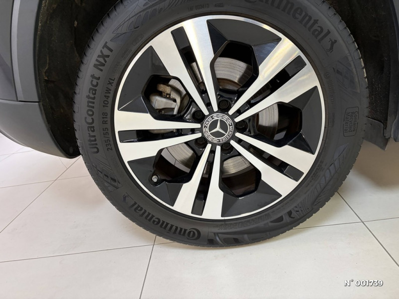 Affichage de l'état des ceintures AR sur le combiné d'instruments / Dossiers des sièges AR rabattables selon un rapport de 40/20/40 / EASY-PACK : hayon à ouverture/fermeture automatique / Capot moteur actif pour la protection des piétons / Chargeur embarqué 3,7 kW AC / Clé de véhicule sertie de chrome / Connexion Bluetooth pour téléphone portable / Désactivation automatique de l'airbag passager AV / Direction paramétrique avec assistance asservie à la vitesse / Baguette de seuil de coffre en chrome / Boîte de vitesse automatique 8G-DCT / Buses d'aération noires avec cerclage chromée argentée / Câble de charge pour prise secteur, 5 m, droit / Câble de charge pour boîtier mural et bornes de recharge publiques, 5 m, droit, 11 kW / Airbags latéraux pour le conducteur et le passager AV (airbags combinés thorax et bassin) / Assistant de stabilisation en cas de vent latéral / Antenne GPS / Avertisseur sonore pour piétons / ATTENTION ASSIST : système de détection de somnolence / Avertisseur de limitation de vitesse / ABS (anti-blocage de roues), ASR (antipatinage), BAS (freinage d'urgence assisté) / Ciel de pavillon en tissu noir / ADAPTIVE BRAKE avec fonction Hold, aide au démarrage en côte, pré-remplissage et séchage des freins par freinage en cas de pluie / Accoudoir dans la console centrale pour conducteur et passager avec bac de rangement intégré / Aide au parking active avec PARKTRONIC / Prééquipement pour Live Traffic Information / Projecteurs hautes performances à technologie LED / Protection anti-encastrement design en finition chrome brillant AV et AR / Prise de recharge / Tapis de sol en velours / Inserts décoratifs finition Spirale / Interface média USB dans la console centrale AR / MBUX système multimedia / Ligne de ceinture et baguette décorative en chrome / Pack Progresive / Jantes alliage 45.7 cm (18'') à 5 doubles branches Noir/argent, pneus 235/55 R18 / Kit anti-crevaison TIREFIT / Palettes de changements de rapports / Pavé tactile TOUCHPAD / Peinture Noir / Fixations iSize pour siège-enfant avec sangle Top Tether aux places extérieures AR / Fonction de démarrage sans clé KEYLESS-GO / Fonction Start/Stop ECO / Interface média USB dans le vide-poche / Garniture en Tissu/Similicuir ARTICO Noir / Frein multicollision / Grille de calandre à une lamelle peinte en argent mat avec insert chromé / Eclairage du coffre / DYNAMIC SELECT: 4 modes de conduite (ECO, Confort, Sport et Individual) / Ecran média haute résolution 10,25" / Essieu AR à bras combinés / Essuie-glaces avec détecteur de pluie / Filet à bagages dans l'espace de chargement / Feux de stop adaptatifs / Filet de rangement au dos des sièges AV / Frein de stationnement électrique / Fonctionnalités élargies MBUX / Freinage d'urgence assisté actif / Double porte-gobelets / Documentation en français / DYNAMIC SELECT / Pavé tactile TOUCHPAD / Pré-équipement pour service d'autopartage / Rampes de toit en aluminium poli / Tapis de sol en velours / Pack Rétroviseurs / Eclairage du pavé tactile / Spots de lecture AV/AR / Double porte-gobelets / Prise 12 V dans le coffre / Ciel de pavillon en tissu noir / Pack Compartiment de chargement / Navigation par disque dur / Eclairage de signalisation et de proximitéà l'extérieur / Eclairage des poignées de portes intérieures / Eclairage des vide-poches / Projecteurs hautes performances à technologie LED / Aide au parking active avec PARKTRONIC / Jantes alliage 45.7 cm (18'') à 5 doubles branches Noir/argent, pneus 235/55 R18 / Pack Progresive / Rétroviseurs intérieur et extérieur côté conducteur à commutation jour/nuit automatique / Baguette de seuil de coffre en chrome / MBUX système multimedia / EASY-PACK : hayon à ouverture/fermeture automatique / Volant sport multifonction en cuir avec boutons Touch-Control / Sièges AV Confort / Sorties d'echappement apparentes (non fonctionnelles) / Tapis réversible dans l'espace de chargement / Rampes de toit en aluminium poli / Revêtement noir grené avec parties chromées sur les parties latérales / Train de roulement confort / Services à distance et pour la charge Plus / Vide-poche sur la console centrale avec couvercle à enrouleur / Système d'appel d'urgence Mercedes-Benz / Système de commande vocale et assistant personnel activable grâce à "Hey Mercedes" / Volant à gauche / Eclairage du plancher à l'AV / Fonctionnalités élargies MBUX / Kit anti-crevaison TIREFIT / Ecran média haute résolution 10,25" / Rétroviseurs extérieurs couleur carrosserie / Vitres latérales AR at lunette AR teintées foncées / Sièges AV confort avec réglages de la hauteur et de l'approche du siège, de l'inclinaison du dossier, de l'inclinaison de l'assise, de la profondeur de l'assise / Pare-soleil avec miroir de courtoisie éclairé / Navigation par disque dur / Module de communication LTE pour l'utilisation des services Mercedes connect me / Pneumatiques été / Régulateur de vitesse TEMPOMAT avec limiteur de vitesse / Pré-équipement pour service d'autopartage / Préinstallation pour radio numérique / Prise 12 V dans la console centrale / Prééquipement pour les services à distance et de navigation / Prise 12 V dans le coffre