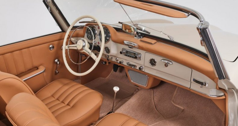 Nous vous proposons parmi sa collection de 190 SL ce magnifique modèle de 1960, « White grey », intérieur « Nature », complétement restauré. Cette 190 SL a fait l’objet d’une restauration complète dans nos ateliers. Tout a été revu de A à Z pour garantir un maximum de fiabilité. L’intérieur, complètement neuf, a été refait en cuir « nature » aux formes et motifs d’origine. Tout la partie mécanique (motorisation, boite, pont, freinage…) a été révisée et testée. Le soft top totalement neuf est de couleur beige. Garantie 2 ans - Livraison dans toute l’Europe Contactez dès aujourd’hui Top Classics pour plus d’informations ou organiser une visite privée