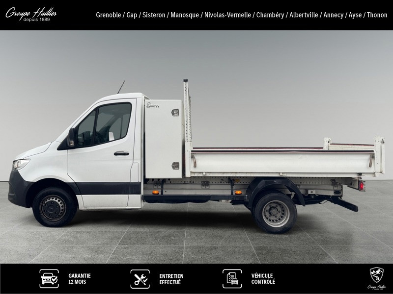 514 CDI 37 simple cabine benne et coffre, diesel, blanc, 09/07/2020, Traverse arrière vissée, Support roue de secours sous l? extrémité du cadre, Pneus 205/75 R 16 C, Cric Hydraulique, Version sp.pays UE - AELE - GB, Rangements cabine au-dessus conduc et passagers, MB Connect - 5, Rétroviseurs extérieurs chauffants à réglage élec., Aide au démarrage en côte, Feux de stop adaptatifs, Châssis avec cabine simple, Version de P.T.A.C de 3 500 kg, Batterie supp. sous le passager 92 Ah, Feux de position latéraux, Caisson de siège conducteur, bas, Vitres teintées pare-brise ac bandeau pare-soleil, Réservoir principal 71 l, TEMPOMAT, Tissu Maturin noir, Indicateur de température extérieure, Roue de secours, Renfort de longeron, Indicateur du point de passage des rapports, Moteur OM 651 DE 22 LA de 105 kW (143 ch) à 3 800 tr/min, Barrette de raccordement électrique, Poignées maintien pour accès conduct. et passager, Stabilisation niveau I, Prise électrique de remorque, à 13 broches, Essieu avant avec capacité de charge augmentée, Masse de référence minimum de 2 381 kg nécessaire, Alternateur 14 V / 200 A, Banquette passager avant à 2 places, Vide-poche au-dessous du tableau de bord, Serie C907 VS30 propulsion AR, Version standard, Prééquipement pr charge remorquée jusqu à 3500 kg, Avertisseur de franchissement de ligne, Siège suspendu confort pour le conducteur, Sprinter série C907/C910, Système de dépollution des gaz SCR génération 3, Jantes acier 5,5 J x 16, Rapport de pont i = 4,727, Contact d? aide au démarrage, Relais de coupure pour batterie supplémentaire, MBUX Système multimédia àécran tactile 7 pouces, OBD (On Board Diagnostics) niveau D, Site de fabrication : Ludwigsfelde, Mercedes-Benz MobiloVan avec carnet de maintenance en ligne et garantie anticorrosion, Pack de modifications 9 - I, Accoudoir pour siège conducteur, Volant multifonctions, Boîte de vitesses méca à 6 rapports ECO Gear 360, Allumage automatique des phares, Système de stabilisation en cas de vent latéral, Prééquipement panneau de contacteurs, Pneus toutes saisons, Code de controle usine 065