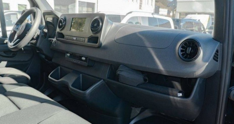 Attelage renforcé capacité remorquage 3, 5 t Rétroviseurs chauffants et électriques Pare-brise athermique avec bande filtrante Peinture métallisée Capteur de pluie Habillage compartiment de chargement jusqu’au toit lavable Portes arrière battantes ouverture complète Pack acoustique Jantes AEJ X3/1 Accoudoir siège conducteur Plancher bois Siège conducteur chauffant Fonction HOLD maintien à l’arrêt Aide au démarrage en côte Boîte automatique 9G-TRONIC Régulateur de vitesse AUDIO ET COMMUNICATION Système multimédia MBUX écran tactile 7 pouces Radio numérique DAB INTERIEUR Volant multifonction Télécommande multifonction Climatisation semi automatique TEMPMATIC Banquette passager double Sellerie tissu noir Maturin Cloison de séparation pleine Porte latérale coulissante droite Assistant feux de route Troisième feu stop Eclairage LED espace de chargement Unité de commande de toit confort Feux de position latéraux Plafonnier avec détection ouverture portes Toit surélevé Système de navigation Alarme antivol Airbag conducteur et passager Appel d’urgence Mercedes-Benz Assistance dépannage Capteur température extérieure Assistant vent latéral Pack stationnement avec caméra de recul Module de communication LTE Réservoir carburant 71 litres Système SCR génération 4 Feux stop adaptatifs Limitation vitesse 130 km h Moteur OM 654 DE 20 LA 170 ch Système Start Assist Freins renforcés Châssis renforcé pour confort et protection chargement Direction assistée Pré équipement tachygraphe UE Affichage vitesse km h Détection présence conducteur Alerte ceinture conducteur et passager AMENAGEMENT ET CARROSSERIE Empattement 3665 mm PTAC 3, 5 tonnes Fourgon tôlé Renfort longerons longitudinaux Traverse avec marchepied intégré Siège conducteur suspendu confort Siège conducteur avec coffre bas Poignée accès porte latérale Poignée accès arrière Habillage passages de roues Rails d’arrimage latéraux Goulottes de câblage Zone climatique unique Pré équipement capteurs tachygraphe Notice numérique