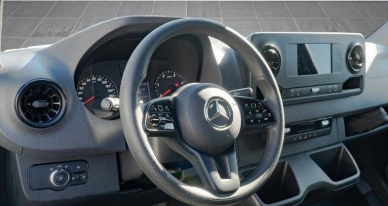 Attelage renforcé capacité remorquage 3, 5 t Rétroviseurs chauffants et électriques Pare-brise athermique avec bande filtrante Peinture métallisée Capteur de pluie Habillage compartiment de chargement jusqu’au toit lavable Portes arrière battantes ouverture complète Pack acoustique Jantes AEJ X3/1 Accoudoir siège conducteur Plancher bois Siège conducteur chauffant Fonction HOLD maintien à l’arrêt Aide au démarrage en côte Boîte automatique 9G-TRONIC Régulateur de vitesse AUDIO ET COMMUNICATION Système multimédia MBUX écran tactile 7 pouces Radio numérique DAB INTERIEUR Volant multifonction Télécommande multifonction Climatisation semi automatique TEMPMATIC Banquette passager double Sellerie tissu noir Maturin Cloison de séparation pleine Porte latérale coulissante droite Assistant feux de route Troisième feu stop Eclairage LED espace de chargement Unité de commande de toit confort Feux de position latéraux Plafonnier avec détection ouverture portes Toit surélevé Système de navigation Alarme antivol Airbag conducteur et passager Appel d’urgence Mercedes-Benz Assistance dépannage Capteur température extérieure Assistant vent latéral Pack stationnement avec caméra de recul Module de communication LTE Réservoir carburant 71 litres Système SCR génération 4 Feux stop adaptatifs Limitation vitesse 130 km h Moteur OM 654 DE 20 LA 170 ch Système Start Assist Freins renforcés Châssis renforcé pour confort et protection chargement Direction assistée Pré équipement tachygraphe UE Affichage vitesse km h Détection présence conducteur Alerte ceinture conducteur et passager AMENAGEMENT ET CARROSSERIE Empattement 3665 mm PTAC 3, 5 tonnes Fourgon tôlé Renfort longerons longitudinaux Traverse avec marchepied intégré Siège conducteur suspendu confort Siège conducteur avec coffre bas Poignée accès porte latérale Poignée accès arrière Habillage passages de roues Rails d’arrimage latéraux Goulottes de câblage Zone climatique unique Pré équipement capteurs tachygraphe Notice numérique