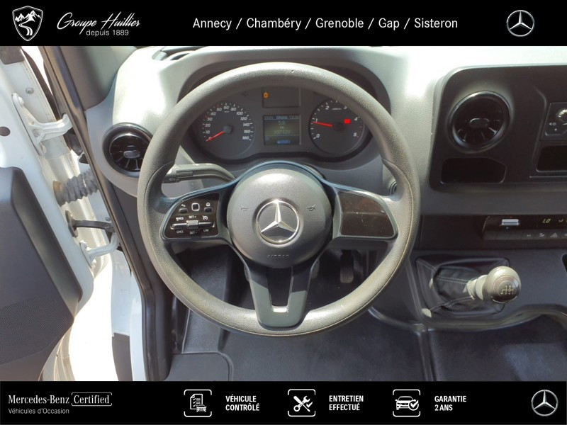 314 CDI Fourgon Toit surélevé Standard - 21 400HT, diesel, blanc, 13/07/2020, Réservoir principal 71 l, Version sp.pays UE - AELE - GB, Suppression de l abaissement du véhicule, Traverse attelage avec platine 4 trous, Mercedes-Benz MobiloVan avec carnet de maintenance en ligne et garantie anticorrosion, Module de com. (LTE) pour services numériques, Poignée accès latéral compartiment de chargement, Climatiseur semi-automatique TEMPMATIC, Autoradio numérique (DAB), Fonction Stop/Start ECO, Véhicule peu polluant à la norme Euro 6c cl. III, Demi marchepied métallique côté droit, Renfort de longeron, 3. feu de stop, Pneus 235/65 R16 C, Cric Hydraulique, Rétroviseurs extérieurs chauffants à réglage élec., Moteur OM 651 DE 22 LA de 105 kW (143 ch) à 3 800 tr/min, Homologation N1, Serie C907 VS30 propulsion AR, Jantes acier 6,5 J x 16, Indicateur du point de passage des rapports, Code de controle usine 065, Support roue de secours sous l? extrémité du cadre, Code de contrôle essieu arrière, grand couronne 215, Rapport de pont i = 3,923, Alternateur 14 V / 200 A, Indicateur de température extérieure, Tissu Maturin noir, Prise électrique de remorque, à 13 broches, Assistance en cas de panne, Aide au démarrage en côte, Système audio MB, Génération norme antipollution WLTP, Volant réglable en hauteur et en inclinaison, Génération modèle 0, Système de dépollution des gaz SCR génération 3, Pneus à faible résistance au roulement, Vide-poche au-dessous du tableau de bord, Système de stabilisation en cas de vent latéral, Rangements cabine au-dessus conduc et passagers, Porte coulissante à droite, Boîte de vitesses méca à 6 rapports ECO Gear 360, Feux de position latéraux, Version de P.T.A.C de 3 200 kg, Site de fabrication : Düsseldorf, Sprinter série C907/C910, Toit surélevé, TEMPOMAT, Roue de secours, Accoudoir pour siège conducteur, Poignée accès sur montant d?angle arrière droit, Banquette passager avant à 2 places, Cloison de séparation continue, Version standard, Volant multifonctions, Feux de stop adaptatifs, Allumage automatique des phares, Fourgon, Pneus été, Contact d? aide au démarrage, Pack de modifications 0 - I, Siège conducteur confort