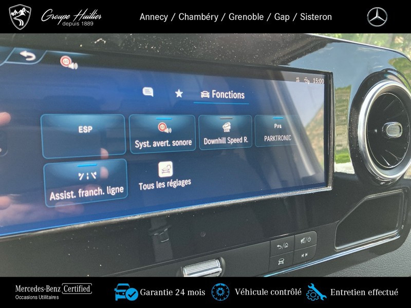 319 CDI Fourgon PRO Toit sureleve Standar, diesel, 19/12/2024, Rétroviseurs extérieurs sans rappels de clignotant, Prise USB 5 V, TEMPOMAT, Poignée accès sur montant d?angle arrière droit, Plancher en bois, Année modèle 5, Volant multifonctions, Allumage automatique des phares, Pneus été, Pneus de marque différente selon souhait client, 3,5 tonnes, Batterie AGM 12 V 70 Ah, Rangements cabine au-dessus conduc et passagers, Détecteur de pluie, PSM ? Module Spécial paramétrable pour carrossiers, Porte coulissante à droite, Feux de position latéraux, Porte coulissante à gauche, Troisième feu stop, Prise électrique de remorque, à 13 broches, Rétroviseurs extérieurs rabattables électriquement, Vitres teintées pare-brise ac bandeau pare-soleil, Tissu Maturin noir, Toit surélevé, AEJ X4/1, Autoradio numérique (DAB), Climatiseur semi-automatique TEMPMATIC, Poignée accès latéral compartiment de chargement, Poignées maintien pour accès conduct. et passager, Traverse attelage avec platine 4 trous, Empattement 3 665 mm, sans augm./dimin. P.T.A.C. : 3500 kg, Demi marchepied métallique côté droit, Mercedes-Benz MobiloVan avec carnet de maintenance en ligne et garantie anticorrosion, Rapport de pont i = 3,923, Phares LED hautes performances, Combiné d instruments avec visuel couleur, Jantes acier 6,5 J x 16, Aide au démarrage en côte, Plafonnier(s) compartiment passagers/de chargement avec contacteur de porte, Boîte automatique 9G-TRONIC, Assistance en cas de panne, Portemanteau dans la cabine, Rétroviseurs extérieurs chauffants à réglage élec., ATTENTION ASSIST, Feux arrière partiellement à LED, Moteur OM 654 DE 20 LA 140 kW (190 ch), Prise 230 V, Support roue de secours sous l? extrémité du cadre, Serie C907 VS30 propulsion AR, Cric Hydraulique, Pneus 225/75 R16, Pack Intégration pour smartphone, Airbag conducteur, Fonction HOLD, Volant réglable en hauteur et en inclinaison, Véhicule compatible huile végétale hydratée, Volant cuir, Fermeture assistée élec., porte coulissante droite, Gaine de câbles sur paroi latérale, Prééquipement système de navigation, Vide-poche au-dessous du tableau de bord, Fermeture assistée élec., porte coulissante gauche, Headunit Europa/GUS-Staaten/Mongolei, Gaine de câbles sur encadrement arrière, Système multimédia MBUX, Avertisseur de franchissement de ligne actif, Pack Stationnement avec caméra de recul, Habillage zone chargement jusqu au toit (bois), Avertisseur d angle mort, Système de stabilisation en cas de vent latéral, Pack acoustique, Cloison de séparation continue, Banquette passager avant à 2 places, Freinage d urgence assisté actif, Roue de secours, Affichage de la pression des pneumatiques, 4x4 - Assistance à la descente (DSR), Alternateur 14 V / 250 A, Siège suspendu confort pour le conducteur, Réservoir principal de 93 litres, Renforcement caisse brute, Code de controle usine 155