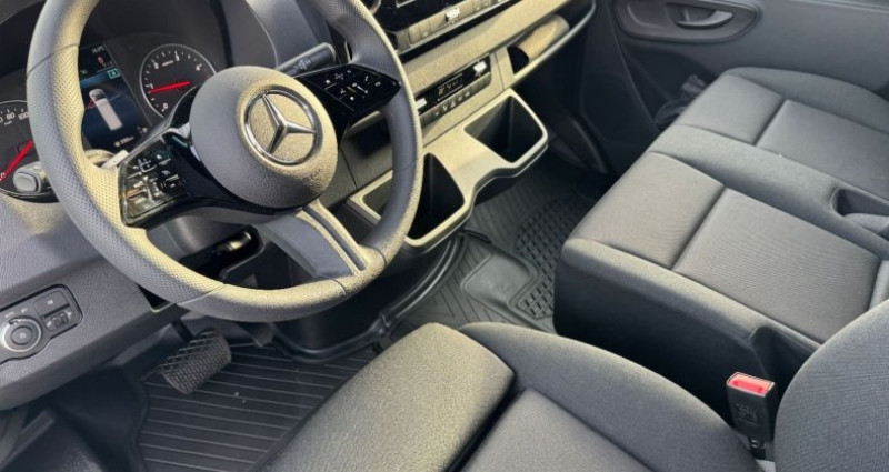 Cylindrée : 1950 cm3 EQUIPEMENTS Airbag conducteur, Poignée d'accès sur le montant d'angle AR droit, ABS + ASR + ESP, Verrouillage centralisé, Vitres AV électriques, Avertisseur oubli ceinture sécurité siège conducteur, Caméra de recul, Poignée accès latéral compartiment de chargement, Direction assistée, Enjoliveurs de roues, Rétroviseurs extérieurs rabattables électriquement, Pneus faible résistance à roulement, Rétroviseurs extérieurs chauffants à réglage électrique, Cloison de séparation continue, Vide/poches au/dessous du tableau de bord, Fonction Stop/Start ECO, Détecteur de pluie, Pneumatiques été, Feux de gabarit latéraux, Tissu Maturin noir, Volant multifonctions, Volant réglable en hauteur et en inclinaison, Troisième feux stop, Roue de secours, Support roue de secours sous l´extrémité du cadre, Vitres teintées équipées d'un bandeau pare/soleil sur pare/brise, Pneumatiques sans prescriptipon de marque, Prédisposition faisceau d'attelage, Système d'appel d'urgence Mercedes/Benz, Porte coulissante droite, Système de dépollution des gaz SCR génération 4, Vide/poches sous planche de bord côté passager, Module de communication (LTE) pour services numériques, Système de stabilisation en cas de vent latéral, Indicateur de température extérieure, Pack Intégration pour smartphone, Pack Stationnement avec caméra de recul, Siège conducteur confort, Toit surélevé, Tachymètre avec graduation en km/h, Essieu AV avec capacité de charge augmenéee, Freinage d'urgence assisté actif, Feux stop adaptatifs, Tempomat, Renfort de longeron, Rangements cabine au/dessus conducteur et passager AV, Combiné d'instruments avec visuel couleur, Jantes acier 6 5 J x 16, Siège passager AV à 2 places, Gaine de câbles sur paroi latérale, Gaine de câbles sur encadrement AR, Pack acoustique, Réservoir principal 93 l, Climatisateur TEMPMATIC à régulation semi/automatique, Avertisseur d'angle mort, Batterie 12 V/95 Ah, Avertisseur oubli ceinture sécurité siège passager AV, ATTENTION ASSIST : Système de détection de somnolence, Alternateur 14 V/250 A, Anneau de remorquage AR, Airbag passager AV, Autoradio numérique (DAB), Affichage de la pression des pneumatiques, Assistance en cas de panne, Allumage automatique des phares, Aide au demarrage en côte, Avertisseur de franchissement de ligne actif, Boîte automatique 9G/TRONIC, Assistant de vitesse intelligent, Pneumatiques 235/65 R16, Contact d'aide au démarrage, Extra numérique : Remote Services Plus, Mises à jour Assistant de vitesse intelligent, Prééquipement système de navigation, Système multimédia MBUX, Plafonnier(s) compartiment passagers/de chargement avec contacteur de porte, Prise USB 5 V partie inférieure console centrale, Deux portemanteaux dans la cabine, Isolation phonique du compartiment moteur, Caméra conducteur, Extra numérique: mises à jour Assistant de vitesse intelligent, Dispositif d'attelage à boule fixe, Marchepied porte AR, Portes AR battantes ouverture 270°,