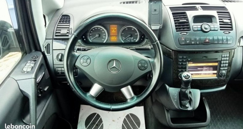 Mercedes Viano 2.2 CDI BlueEfficiency Compact Ambiente A monospace, gris fonce, 10 cv, 5 portes, couleur intérieure : noir, première mise en circulation le 14/12/2011. Véhicule en dépôt vente, Rien à prévoir suivi complet sur facture. Garantie 3 mois. Possibilité d'extension 6 ou 12 mois avec surcout. Prix hors carte grise. Sous réserve d'erreur dans l'annonce. Chez RSR MOTORS, l'achat de votre véhicule est simplifié : nous prenons en charge toutes les formalités d'immatriculation, rapidement et gratuitement. 6 places OPTIONS ET EQUIPEMENTS : Extérieur : - porte latérale - toit ouvrant - toit ouvrant électrique - vitres électriques - vitres surteintées - phares xenon - filtre à particules - jantes alliage Intérieur et confort : - chauffage stationnaire - ordinateur de bord - volant multifonctions - aide au démarrage en pente - radio CD MP3 - climatisation - intérieur cuir Sécurité : - détecteur de pluie - fermeture centralisée - ABS - airbags frontaux - alarme - anti-démarrage - anti-patinage - ESP - phares antibrouillard - suspension pneumatique - ASR - fixation ISOFIX - régulateur de vitesse - limiteur de vitesse Autres équipements et informations : - consommation extra urbaine : 6,80 litres - consommation urbaine : 10,00 litres - consommation mixte : 8,00 litres - puissance réelle : 163 ch - émission CO2 : 211 g/km - Puissance kilowatt : 120 kw - kit de dépannage pneumatique - prise 12V - CD - prise audio auxiliaire - projecteurs bi-xénon - indicateur de température extérieur - auto-radio : CD - Airbags thorax - Baguette decorative en peinture speciale 'Silverstone' au niveau du poste de conduite - Boite a gants verrouillable - Boite automatique 5 rapports - Ceintures de securite 3 points a toutes les places - Colonne de direction reglable manuellement en hauteur et en profondeur - Detecteur automatique de presence d'un passager AV - Detecteur automatique de presence de siege-enfant - Echangeur thermique additionnel AR - Echangeur thermique supplementaire a l'AR - avec module de commande separe - Feux stop adaptatifs clignotants - Freins a disque (x4) - ventiles a l'AV - Garnitures cuir Lugano gris Orion des sieges et contre-portes - Grille de calandre chromee - Indicateur dynamique de maintenance ASSYST - Inserts decoratifs en ronce de noyer claire sur la console centrale et portes AV - Lave-phares - Monogramme Ambiente sur le bas des portes AV - Pack Efficience BlueEFFICIENCY - Pneumatiques 225/60 R16 - Poches aumonieres au dos des sieges AV - Reglages lombaires des sieges conducteur et passager - Retroviseurs exterieurs aspheriques chauffants - a reglage electrique - Retroviseurs exterieurs et poignees de porte dans le ton carrosserie - Revetement de sol moquette - Securite enfants aux portes AR - Seuils de portes AV eclaires - Sieges AV confort reglables manuellement en hauteur avec un accoudoir - Sieges individuels AR avec 2 accoudoirs (x4) - Sieges individuels AR avec deux accoudoirs (x4) - Soutien lombaire pour siege conducteur - Soutien lombaire pour siege passager - Systeme de rails pour l'ancrage des sieges - Triangle de presignalisation - Vitrage athermique integral - Vitres AR entrebaillantes electriques - Vitres entrebaillantes electriques (2eme rangee AR - cotes gauche et droit) - Volant et levier de vitesse en cuir - Volant multifonctions avec affichage au tableau de bord - 2 cles additionnelles - Airbags de tete - Audio 50 APS Navigation par DVD - Augmentation du PTRA (PTC remorque 2500 kg) - Climatiseur automatique Thermotronic - Climatiseur automatique a l'AR - COMAND APS Navigation - Commande electrique pour porte laterale droite - Commande electrique pour porte laterale gauche - Cuir Lugano anthracite - Version 7 places - Extincteur - Filtre a gasoil avec decanteur d'eau - Pack Plein Air - Peinture metallisee - Poignee d'acces - Porte laterale gauche - Retroviseur interieur jour/nuit automatique - Siege conducteur chauffant - Siege passager chauffant - Tablette repliable - Telephone : pre-equipement pour telephone portable avec interface universelle UHI - Toit ouvrant electrique dans le compartiment passager - Trousse de premiers secours - Version 4MATIC - Version 7 places Référence annonce : zpmny9dgu8