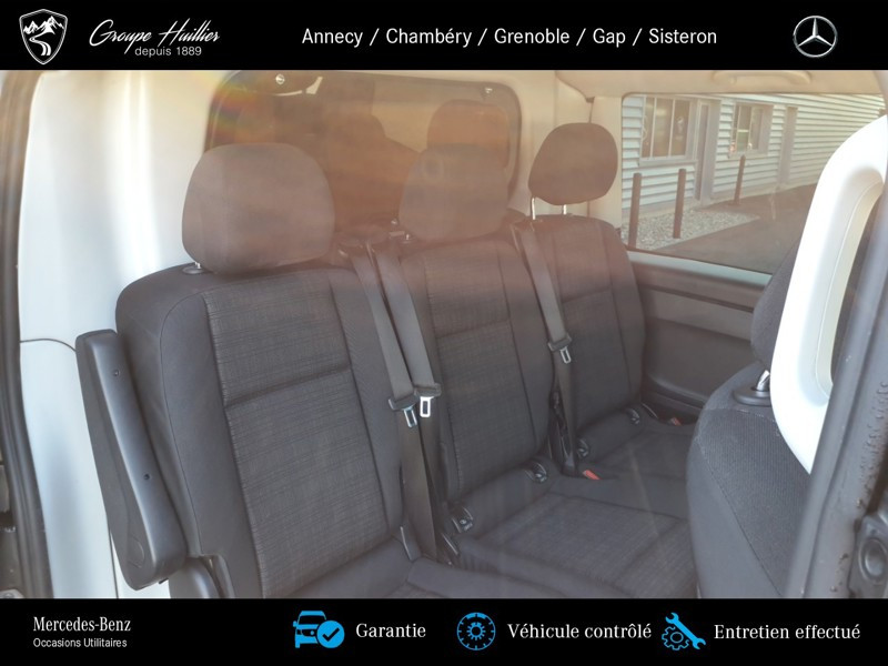 119 CDI Mixto Long - 31 400HT, diesel, gris, 05/02/2020, Témoin de bas niveau de liquide de lave-glace, Mercedes-Benz MobiloVan avec carnet de maintenance en ligne et garantie anticorrosion, Europe, Assistance en cas de panne, Sécurité enfant sur les portes du compartiment passagers, Plaque des poids pour la France, Porte arrière deux battants 180 degres sans fenetre, Banquette 3 places confort pour la 1re rangée, siège extérieur rabattable, Vitre avt droite fixe ds paroi lat./porte couliss., Combi, Volant multifonctions avec ordinateur de bord, Aide au Parking Active, Rétroviseur intérieur, Vitres teintées AR et côtés, noir, Jantes alliage 7 J x 17, Ciel de pavillon, Points d arrimage dans le cadre de toit, Ouverture et fermeture confort par télécommande infrarouge, Rétroviseurs extérieurs chauffants à réglage élec., Alarme antivol et anti-effraction, Vitres teintées, Roue de secours avec cric, Siège passager avant confort, Becker MAP PILOT, Conduit ?d air chaud vers compartiment passagers, Accoudoirs pour les sièges du compartiment passagers, Châssis standard Plus, Phares antibrouillards halogènes, Aide au démarrage en côte, Pare-chocs et pièces rapportées dans le ton carrosserie, Siège conducteur confort, Moteur OM 651 DE 22 LA de 140 kW (190 ch) à 3 800 tr/min, Climatiseur semi-automatique TEMPMATIC, Pneus été, Détecteur de pluie, Variante de poids de 3 050 kg, Volant réglable en hauteur et en inclinaison, Vitre avt gauche fixe ds paroi lat./porte couliss., ATTENTION ASSIST, Pack de modifications 9 - II, TEMPOMAT, Zone climatique 2 (tempéré), Réservoir de carburant grand format, Pack CONFORT Mixto, Volant cuir, Eclairage intérieur à l?arrière, Poignée de maintien à l?arrière, Tissu Tunja noir, Plancher en bois, Peinture métallisée, Pack Stationnement, Mixto, Alternateur 14 V / 200 A, Boite automatique à convertisseur 7G-Tronic Plus, Autoradio Audio 15, Cloison de séparation continue entre les montants C, avec fenêtre, Affichage de la pression des pneumatiques, Poignée de maintien au niveau des accès, Véhicule peu polluant à la norme Euro 6c cl. III, Système d?arrêt actif pour la porte coulissante, Dispositif d?attelage à boule fixe, Caméra de recul, Habillage intérieur de qualité supérieure, Allumage automatique des phares, Pare-soleil avec miroir de courtoisie éclairé