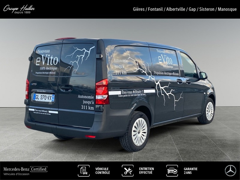 e 112 Fourgon Long Fg eVito 116ch, électrique, gris, 26/01/2023, Fonction HOLD, Châssis standard, Certificat CE de conformité, ENJOLIVEURS DE ROUES, Habillage intérieur du compartiment de chargement, côté, Climatiseur semi-automatique TEMPMATIC, Pneus 225/55 R17, Autoradio numérique (DAB), Vito/Classe V série C 447, Siège conducteur confort, Prééquipement Remote Services Plus, Télécommande radio multitouches, Porte arrière deux battants 180 degres sans fenetre, TEMPOMAT, Code de contrôle passage à WLTP, Volant multifonctions avec ordinateur de bord, Cloison de séparation continue, Zone climatique 2 (tempéré), Année modèle 3, Freinage d urgence assisté actif, Banquette passager avant à 2 places, Basic, Plaques/imprimés en français, Volant réglable en hauteur et en inclinaison, Homologation camion, Pack de maintenance, Feux de stop adaptatifs, Données du véhicule codées VIN avec chiffre de contrôle, Restylage, Allumage automatique des phares, Fourgon, Pneus été, Version standard, Airbag passager avant, Module de com. (LTE) pour services numériques, Câble de charge mode 3 (type 2, 3x32A) 4m, Prééquipement pour Remote et Navigation Services, Mercedes-Benz MobiloVan avec carnet de maintenance en ligne et garantie anticorrosion, Sprinter restylage 2003, Aide au démarrage en côte, Moteur électrique 85 kW / batterie 60 kWh (utile), Bandeau de LED dans le compartiment de chargement, Avertisseur sonore pour piétons, Jantes acier 6,5 J x 17, Combiné d instruments avec affichage matriciel à pixels, Module de pavillon confort, Intervalle de maintenance 1 ans, ATTENTION ASSIST, Trafic sur courte distance, Rétroviseurs extérieurs chauffants à réglage élec., Vitres teintées, Tissu Caluma noir, Assistance en cas de panne, Charge remorquée 0 kg/lbs, Pack de modifications 2 - II, Affichage de la pression des pneumatiques, Système d appel d urgence Mercedes-Benz, Limitation de vitesse à 120 km/h, Tapis de sol en caoutchouc résistant, Ecrous à souder sur paroi lat. pour équipements, Siège conducteur chauffant, Caméra de recul, Version de P.T.A.C de 3 200 kg, Avertisseur oubli ceinture sécurité siège passager, Haut-parleurs à 2 voies à l avant, Audio 30, Détecteur de pluie, Roue de secours avec cric, Points_d arrimage_dans_le_cadre_de_toit