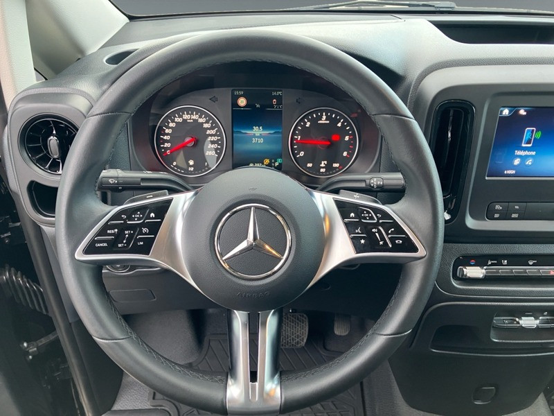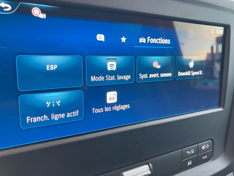116 CDI 4x4 Fourgon Long, diesel, noir, 24/06/2025, Headunit Europa/GUS-Staaten/Mongolei, Véhicule compatible carburants alternatifs XTL/HVO, Poignées maintien accès cabine conduct. et passager, Jantes acier 6,5 J x 17, Points d arrimage dans le cadre de toit, Code de contrôle développement, Avertisseur de franchissement de ligne actif, Génération modèle 2, AEJ X4/1, Variante de poids 2 800 kg, Ecrous à souder sur paroi lat. pour équipements, Mercedes-Benz MobiloVan avec carnet de maintenance en ligne et garantie anticorrosion, Haut-parleurs à 2 voies à l avant, Pack CHANTIER, Année de modification 4, Roue de secours avec cric, Limitation de vitesse à 210 km/h, Extra numérique : pré-équip. pour navigation, Frein de stationnement électrique, Fourgon, Tapis de sol en caoutchouc résistant, Ventilateur à aspiration électrique, niveau 5, Boîte de vitesses automatique 9 rapports 9G-TRONIC, Banquette passager avant à 2 places, Gestion de l alternateur, Arbre d essieu arrière Neapco, Siège conducteur confort, Fonction HOLD, AEJ X4/2, Aide au démarrage en côte, Feux de stop adaptatifs, Avertisseur d angle mort, Système multimédia MBUX, Assistant de vitesse intelligent, Compensation panne servofrein, MULTIBEAM LED avec assistant de feux de route PLUS, Climatiseur semi-automatique TEMPMATIC, Système de freinage optimisé CO2, Extra numérique: mises à jour assist. vit. intell., Pneus 225/55 R17, Rétroviseurs extérieurs chauffants à réglage électrique, Châssis standard, Vitres teintées, TEMPOMAT, Freinage d urgence assisté actif, Porte coulissante à gauche, Charge remorquée 2 500 kg, Airbag passager avant, Soutien lombaire pour le siège conducteur, Réservoir de carburant grand format, Habillage zone chargement jusqu au toit (bois), Volant cuir, Volant multifonction, Mopf II, Caméra de recul, ENJOLIVEURS DE ROUES, Alternateur 14 V / 250 A, Allumage automatique des phares, Pack Intégration pour smartphone, Bandeau de LED dans le compartiment de chargement, Réglage en profondeur de l assise conducteur, Transmission intégrale permanente, Plancher en bois, Rails d arrimage dans panneau latéral, au niveau de la ligne de bas de glaces, Norme antipollution Euro 6e RDE5 N1 gr.III/N2, Simili cuir noir, Ciel de pavillon standard entre les montants B et D, Dispositif d attelage à boule fixe, Année modèle 5, Affichage de la pression des pneumatiques, Autoradio numérique (DAB), Caméra de recul non rabattable, PRO, Cloison de séparation continue, Intervalle de maintenance de 40 000 km, Moteur OM 654 DE 20 LA de 120 kW (163 ch) à 3 800 tr/min, Peinture métallisée, Empattement 3 200 mm, porte-à-faux long, Double porte arrière à 180 degrés