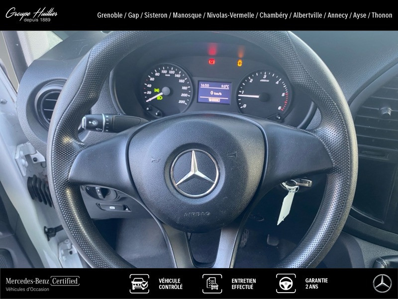 114 CDI Fourgon Long, diesel, blanc, 20/01/2020, Rétroviseurs extérieurs chauffants à réglage élec., Empattement 3 200 mm, porte-à-faux long, Tissu Tunja noir, Marque de pneu Michelin (80), Arbre d essieu arrière Neapco, Gestion de l alternateur, Version standard, Intervalle de maintenance de 40 000 km, Banquette passager avant à 2 places, Cloison de séparation continue, Alternateur 14 V / 200 A, Plaque des poids pour la France, Porte arrière deux battants 180 degres sans fenetre, Aide au démarrage en côte, Feux de stop adaptatifs, Siege conducteur standard, Réservoir de carburant grand format, Batterie tampon pour démarrage, Airbag passager avant, Climatiseur semi-automatique TEMPMATIC, TEMPOMAT, Châssis standard, Vitres teintées, Pack de modifications 9 - II, Autoradio Audio 15, Affichage de la pression des pneumatiques, Points d arrimage dans le cadre de toit, Moteur OM 651 DE 22 LA de 100 kW (136 ch) à 3 800 tr/min, Code de contrôle développement, Prédisposition faisceau d? attelage, Boîte de vitesses mécanique à 6 rapports TSG 380, Jantes acier 6,5 J x 16, Véhicule peu polluant à la norme Euro 6c cl. III, Pneus 195/65 R16, Variante de poids 2 800 kg, Habillage intérieur du compartiment de chargement, côté, Mercedes-Benz MobiloVan avec carnet de maintenance en ligne et garantie anticorrosion, Haut-parleurs à 2 voies à l avant, Allumage automatique des phares, Roue de secours avec cric, Fourgon
