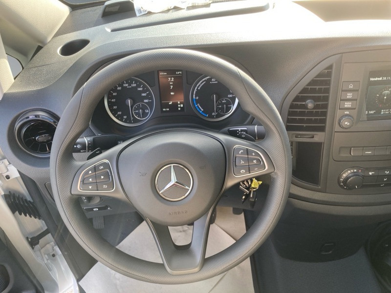 e 112 Fourgon Long, électrique, 27/06/2025, Feux de stop adaptatifs, PARKTRONIC, Charge remorquée 0 kg - aucun tractage possible, Habillage zone chargement jusqu au toit (bois), Pack de maintenance, Airbag passager avant, Compensation panne servofrein, Avertisseur sonore pour piétons, Climatiseur semi-automatique TEMPMATIC, Préclimatisation, Système de freinage optimisé CO2, Freinage d urgence assisté actif, Plancher en plastique, Détecteur de pluie, Châssis standard, Vitres teintées, Rétroviseurs extérieurs chauffants à réglage électrique, Pneus 225/55 R17, Aide au démarrage en côte, Jantes acier 6,5 J x 17, Affichage de la pression des pneumatiques, Points d arrimage dans le cadre de toit, Code de contrôle développement, Combiné d instruments avec affichage matriciel à pixels, Régulateur et limiteur de vitesse TEMPOMAT, Rails d arrimage dans panneau latéral, au niveau de la ligne de bas de glaces, Trafic sur courte distance, Ecrous à souder sur paroi lat. pour équipements, Caméra de recul, Siège conducteur chauffant, Mercedes-Benz MobiloVan avec carnet de maintenance en ligne et garantie anticorrosion, Haut-parleurs à 2 voies à l avant, Pack Stationnement, Allumage automatique des phares, Moteur électrique 85 kW / batterie 60 kWh (utile), Fonction HOLD, Double porte arrière à 180 degrés, Siège conducteur confort, Version standard, Extra numérique: services à distance et nav., Banquette passager avant à 2 places, Pack de modifications 3 - I, Intervalle de maintenance 1 an, Cloison de séparation continue, Limitation de vitesse à 120 km/h, Caméra de recul non rabattable, Version de P.T.A.C de 3 200 kg, Autoradio numérique (DAB), Volant multifonctions avec ordinateur de bord, Roue de secours avec cric, Fourgon, Câble de charge (3x32 A, 22 kW) 5m de long, Audio 30, Tissu Caluma noir