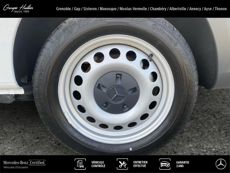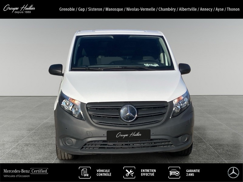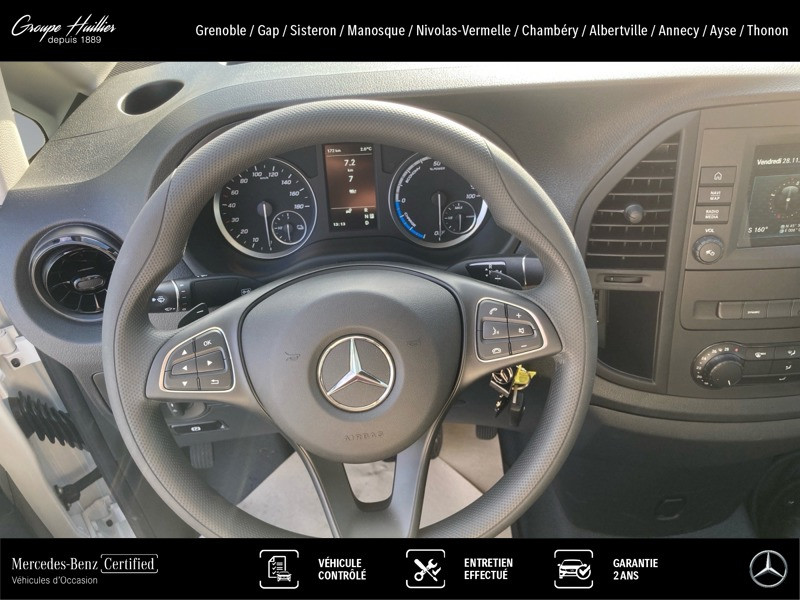 e 112 Fourgon Long, électrique, 27/06/2025, Feux de stop adaptatifs, PARKTRONIC, Charge remorquée 0 kg - aucun tractage possible, Habillage zone chargement jusqu au toit (bois), Pack de maintenance, Airbag passager avant, Compensation panne servofrein, Avertisseur sonore pour piétons, Climatiseur semi-automatique TEMPMATIC, Préclimatisation, Système de freinage optimisé CO2, Freinage d urgence assisté actif, Plancher en plastique, Détecteur de pluie, Châssis standard, Limitation de vitesse à 120 km/h, Caméra de recul non rabattable, Version de P.T.A.C de 3 200 kg, Autoradio numérique (DAB), Volant multifonctions avec ordinateur de bord, Jantes acier 6,5 J x 17, Affichage de la pression des pneumatiques, Points d arrimage dans le cadre de toit, Code de contrôle développement, Combiné d instruments avec affichage matriciel à pixels, Régulateur et limiteur de vitesse TEMPOMAT, Rails d arrimage dans panneau latéral, au niveau de la ligne de bas de glaces, Trafic sur courte distance, Ecrous à souder sur paroi lat. pour équipements, Caméra de recul, Siège conducteur chauffant, Mercedes-Benz MobiloVan avec carnet de maintenance en ligne et garantie anticorrosion, Haut-parleurs à 2 voies à l avant, Pack Stationnement, Allumage automatique des phares, Roue de secours avec cric, Vitres teintées, Rétroviseurs extérieurs chauffants à réglage électrique, Pneus 225/55 R17, Aide au démarrage en côte, Moteur électrique 85 kW / batterie 60 kWh (utile), Fonction HOLD, Double porte arrière à 180 degrés, Siège conducteur confort, Version standard, Extra numérique: services à distance et nav., Banquette passager avant à 2 places, Pack de modifications 3 - I, Intervalle de maintenance 1 an, Cloison de séparation continue, Fourgon, Câble de charge (3x32 A, 22 kW) 5m de long, Audio 30, Tissu Caluma noir