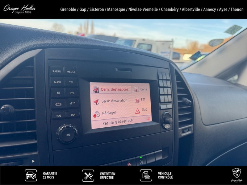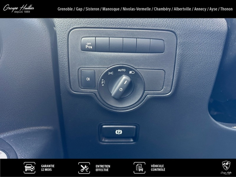 119 BlueTEC Fourgon Compact, diesel, noir, 11/02/2019, Aide au démarrage en côte, Rétroviseurs extérieurs chauffants à réglage élec., Siège conducteur confort, Empattement 3 200 mm, porte-à-faux court, Arbre d essieu arrière Neapco, Gestion de l alternateur, Jantes alliage 7 J x 17 à 20 branches, Version standard, Peinture métallisée, Intervalle de maintenance de 40 000 km, Banquette passager avant à 2 places, Cloison de séparation continue, Alternateur 14 V / 200 A, Plaque des poids pour la France, Porte arrière deux battants 180 degres sans fenetre, Feux de stop adaptatifs, Volant cuir, Pare-chocs et pièces rapportées dans le ton carrosserie, Réservoir de carburant grand format, Batterie tampon pour démarrage, Airbag passager avant, Moteur OM 651 DE 22 LA de 140 kW (190 ch) à 3 800 tr/min, Module de pavillon avec 2 spots de lecture, Climatiseur semi-automatique TEMPMATIC, TEMPOMAT, Détecteur de pluie, Châssis standard, Vitres teintées, Pack de modifications 8 - II, Pneus 225/55 R17, Volant multifonctions avec ordinateur de bord, Roue de secours avec cric, Code de controle usine 157, Fourgon, Becker MAP PILOT, Porte-roue de secours à l intérieur, sur le panneau latéral, Aide au Parking Active, Boite automatique à convertisseur 7G-Tronic Plus, Rétroviseurs extérieurs rabattables électriquement, Autoradio Audio 15, Affichage de la pression des pneumatiques, Points d arrimage dans le cadre de toit, Prédisposition faisceau d? attelage, Simili cuir noir, Intelligent Light System à LED, Ouverture et fermeture confort par télécommande infrarouge, Combiné d instruments avec affichage matriciel à pixels, Variante de poids 2 800 kg, Ecrous à souder sur paroi lat. pour équipements, Caméra de recul, Habillage intérieur du compartiment de chargement, côté, Véhicule peu polluant à la norme Euro 6 cl. III, Mercedes-Benz MobiloVan avec carnet de maintenance en ligne et garantie anticorrosion, Haut-parleurs à 2 voies à l avant, Allumage automatique des phares