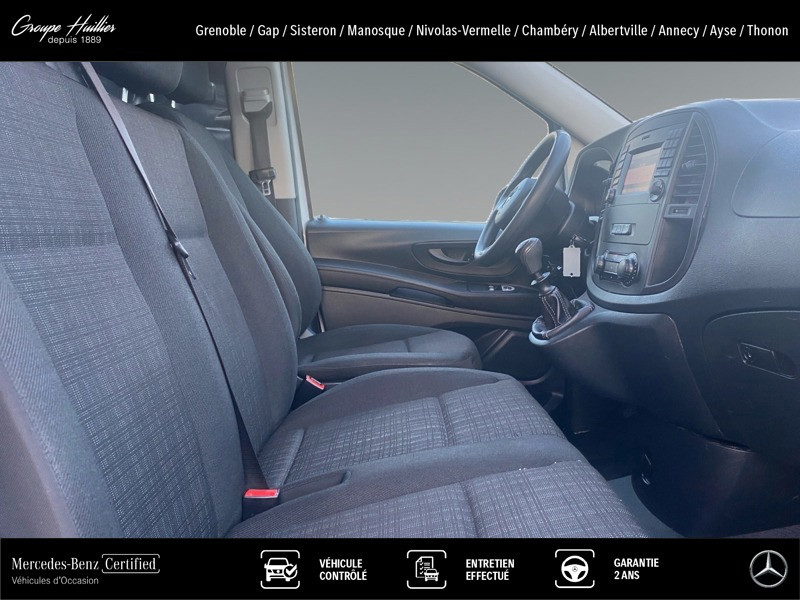 114 CDI Fourgon Long, diesel, blanc, 20/01/2020, Rétroviseurs extérieurs chauffants à réglage élec., Empattement 3 200 mm, porte-à-faux long, Tissu Tunja noir, Marque de pneu Michelin (80), Arbre d essieu arrière Neapco, Gestion de l alternateur, Version standard, Intervalle de maintenance de 40 000 km, Banquette passager avant à 2 places, Cloison de séparation continue, Alternateur 14 V / 200 A, Plaque des poids pour la France, Porte arrière deux battants 180 degres sans fenetre, Aide au démarrage en côte, Feux de stop adaptatifs, Siege conducteur standard, Réservoir de carburant grand format, Batterie tampon pour démarrage, Airbag passager avant, Climatiseur semi-automatique TEMPMATIC, TEMPOMAT, Châssis standard, Vitres teintées, Pack de modifications 9 - II, Autoradio Audio 15, Affichage de la pression des pneumatiques, Points d arrimage dans le cadre de toit, Moteur OM 651 DE 22 LA de 100 kW (136 ch) à 3 800 tr/min, Code de contrôle développement, Prédisposition faisceau d? attelage, Boîte de vitesses mécanique à 6 rapports TSG 380, Jantes acier 6,5 J x 16, Véhicule peu polluant à la norme Euro 6c cl. III, Pneus 195/65 R16, Variante de poids 2 800 kg, Habillage intérieur du compartiment de chargement, côté, Mercedes-Benz MobiloVan avec carnet de maintenance en ligne et garantie anticorrosion, Haut-parleurs à 2 voies à l avant, Allumage automatique des phares, Roue de secours avec cric, Fourgon