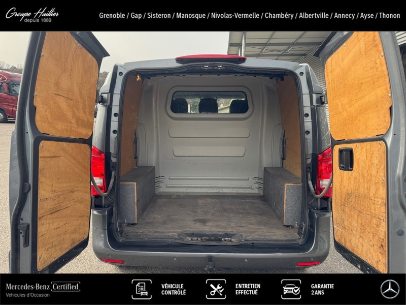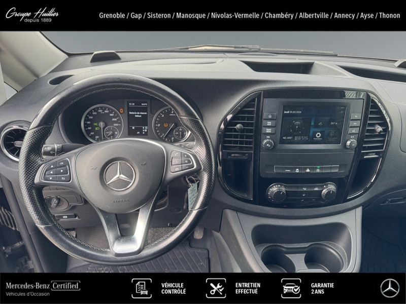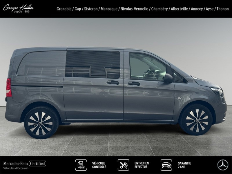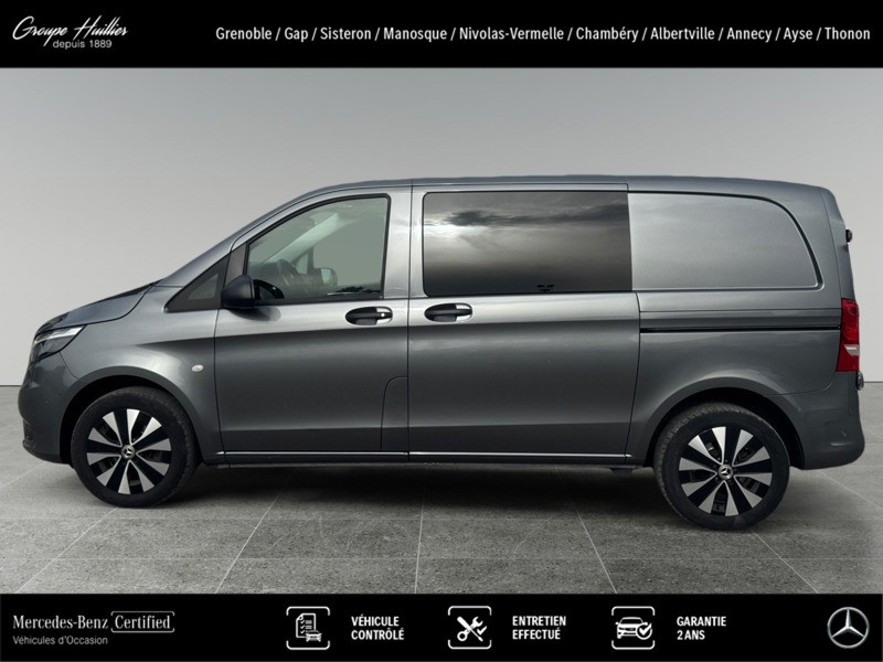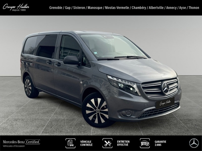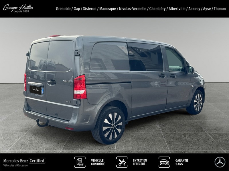 119 CDI 4x4 Mixto Compact, diesel, gris, 06/12/2022, Conduit ?d air chaud vers compartiment arrière, Régulateur et limiteur de vitesse TEMPOMAT, Dispositif d attelage à boule fixe, Plancher en bois, Banquette 3 places confort pour la 1re rangée, siège extérieur rabattable, Simili cuir noir, Allumage automatique des phares, Batterie tampon pour démarrage, Siège conducteur chauffant, Haut-parleurs à 2 voies à l avant, Console centrale avec casier de rangement, Vitres teintées arrière et sur les côtés, Peinture métallisée, Autoradio numérique (DAB), Climatiseur semi-automatique TEMPMATIC, Double porte arrière à 180 degrés, Poignées maintien accès cabine conduct. et passager, Poignée de maintien accès latéral (sans cloison), Sécurité enfant sur les portes du compartiment passagers, Eclairage intérieur et éclairage de proximité du fourgon, Châssis standard, Charge remorquée 2 500 kg, Mercedes-Benz MobiloVan avec carnet de maintenance en ligne et garantie anticorrosion, Soutien lombaire pour le siège conducteur, PARKTRONIC, Jantes alliage 7 J x 17 à 20 branches, Habillage intérieur de qualité supérieure, Intelligent Light System à LED, Combiné d instruments avec affichage matriciel à pixels, Aide au démarrage en côte, Grille de calandre chromée, Pare-chocs et pièces rapportées dans le ton carrosserie, Boîte de vitesses automatique 9 rapports 9G-TRONIC, Audio 30, Vitre fixe droite dans paroi lat./porte couliss., Vitre fixe gauche dans paroi lat./porte couliss., Poignée de maintien à l?arrière, Réservoir de carburant grand format, Eclairage intérieur à l?arrière, Siège passager avant confort, Siège conducteur confort, Alternateur 14 V / 250 A, Affichage de la pression des pneumatiques, Feux de stop adaptatifs, Gestion de l alternateur, Ouverture et fermeture confort par télécommande infrarouge, Cloison de séparation continue entre les montants C, avec fenêtre, Volant multifonctions avec ordinateur de bord, Volant gainé de cuir, Caméra de recul, Double porte-gobelet central avant, Détecteur de pluie, Système d?arrêt actif pour la porte coulissante, Points d arrimage dans le cadre de toit, Porte coulissante à gauche, Eclairage des seuils, Rétroviseurs extérieurs rabattables électriquement, Vitres teintées, Rétroviseurs extérieurs chauffants à réglage électrique, Eclairage du plancher à l?avant, Pneus 225/55 R17, Transmission intégrale permanente, Intervalle de maintenance de 40 000 km, Airbag passager avant, Fonction HOLD, Pack Chrome Intérieur, Pack CONFORT Mixto, Accoudoirs pour les sièges du compartiment passagers