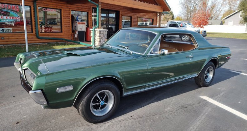 Ce Mercury Cougar de 1968 est en très bon état et conserve toutes ses panneaux originales. Il a été repeint en vert Augusta Green Poly dans une peinture de base clearcoat, avec un sablage et un polissage soigneux, et conserve toutes les fenêtres originales en très bon état. Le tableau de bord en cuir brun moyen est dans un état exceptionnel, sans craquelure dans la couche de couchissure, avec une boîte à gants et des sillons en excellente condition. Sous le capot se trouve le moteur original de 302 ci, équipé d'un carburateur à 4 corps, de la direction et des freins assistés, ainsi qu'une boîte automatique C4 et une suspension avant et arrière révisée. Le véhicule est équipé de roues Magnum originales et de pneus radiaux de grande qualité. Ce Cougar est prêt à rouler.. Ce descriptif est basé sur les éléments communiqués par le propriétaire avec un traitement assisté. Merci pour votre indulgence en cas de formulation perfectible. Provenance : Michigan. Disponibilité : 7 semaines, clés en main. 34 500 € tout compris (importation, taxes, procédure d'immatriculation). Annonce publiée le 13/11/2025