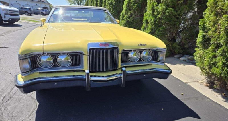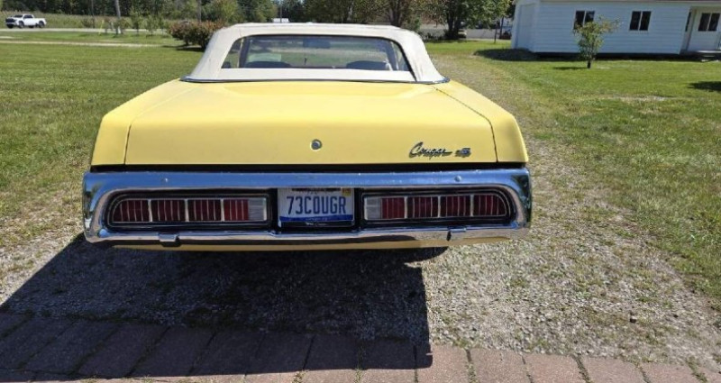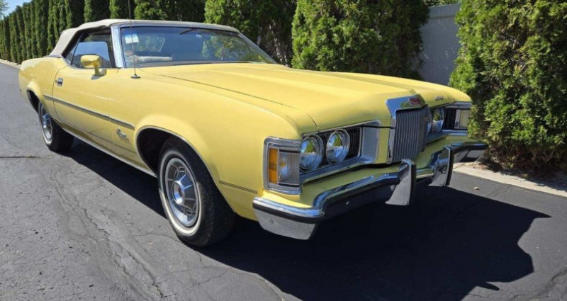 1973 Mercury Cougar XR7 Yellow Convertible - Body Type: Convertible - Transmission: Automatic - Drivetrain: RWD - Engine: 351 V8 - Mileage: 21, 000 - Exterior Color: Yellow - Interior Color: White - Factory white leather bucket seats - New fuel lines, tank, brakes and brake lines - All new bushings - Replaced tires - Original paint and top - Original interior in good condition - New dual exhaust - Dealer Ziebarted at time of new car - Power top - Power steering - Color keyed racing mirrors - Body side moldings - All gauges work but temp gauge sometimes sticks - Top in good shape with a few age spots - A spot in the door panel with usual cracking in arm restAll gauges function except temperature gauge which sometimes sticks.Top is in good condition with a few age spots.There is a spot in the door panel with usual cracking in the arm rest.This vehicle has been pulled out of a barn after 40 years.It has a 351-2v V8 engine with C-6 Automatic transmission.It is an original car with 21, 000 miles according to the owner.It has new fuel lines, tank, brakes and brake lines.It has new bushings and replaced tires.It has original paint and top in good condition.It has original interior in good condition.It has new dual exhaust.It was Ziebarted at the time of new car.It has power top, power steering, color keyed racing mirrors, and body side moldings.All gauges work except the temperature gauge which sometimes sticks.The top is in good condition with a few age spots.There is a spot in the door panel with usual cracking in the arm rest.. Provenance : Michigan. Disponibilité : environ 7 semaines, clés en main. 30 000 € tout compris (importation, taxes, procédure d'immatriculation). Annonce publiée le 02/12/2025