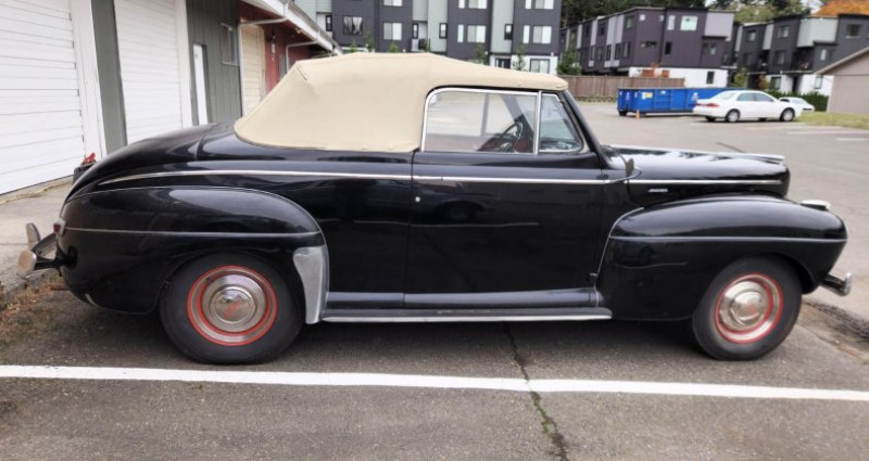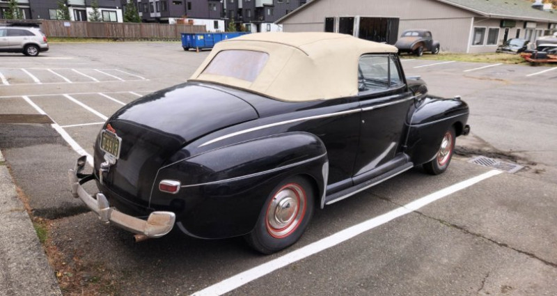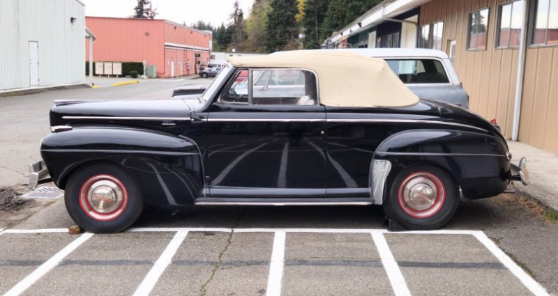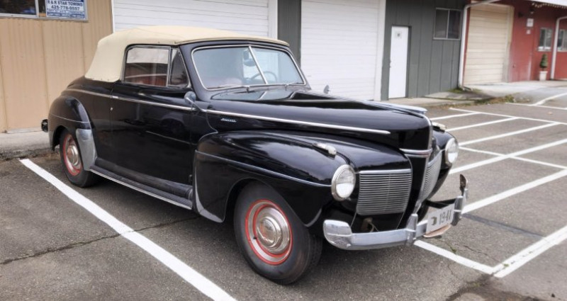 Ce 1941 Mercury Eight Club Convertible est l'un des 8 556 modèles produits et marque la seconde année de sa production. Il est muni d'un moteur V8 plat-head de 239 ci délivrant 95 ch et d'une boîte de vitesses à trois rapports. Il a également été équipé d'un moteur de 389 ci développe 325 ch et d'une boîte de vitesses à quatre rapports, avec un correct Hurst shifter. Après une restauration longue, le véhicule a été mis en stockage. Le toit convertible a été remplacé récemment, la cuir de l'intérieur est magnifique et la peinture est noire. Les pneus sont nouveaux ainsi que la batterie. Son tableau de bord ressemble à de la science-fiction avec un système de démarreur verrouillé. Il est également équipé de bandeauettes et est une voiture propre et bien entretenue. Le véhicule a appartenu à son propriétaire précédent depuis le lycée et il l'a acheté à nouveau 30 ans plus tard. Son numéro de véhicule est 99A106628 et son numéro d'inventaire est 25829. Il a parcouru 12 059 miles.. Ce descriptif est basé sur les éléments communiqués par le propriétaire avec un traitement assisté. Merci pour votre indulgence en cas de formulation perfectible. Provenance : Washington. Disponibilité : 7 semaines, clés en main. 47 500 € tout compris (importation, taxes, procédure d'immatriculation). Annonce publiée le 11/11/2025