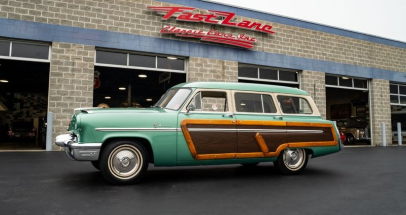 1953 Mercury Monterey Wagon, Green exterior, Turquoise interior, Station Wagon, 3 Speed Manual, Flathead V8, 44, 216 mileage, VIN: 53ME97330, 12-volt conversion, Wood paneling, 3 rows of seating, believed original seat upholstery, new carpet, available at Fast Lane Classic Cars.. Provenance : Missouri. Disponibilité : environ 7 semaines, clés en main. 35 500 € tout compris (importation, taxes, procédure d'immatriculation). Annonce publiée le 28/11/2025